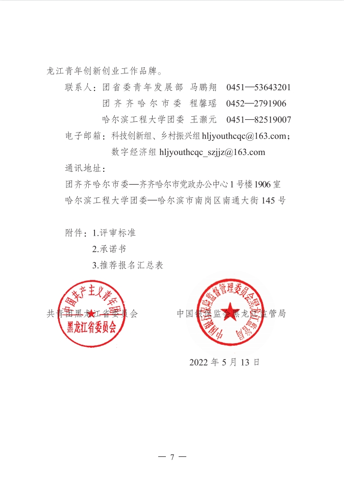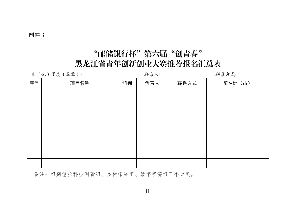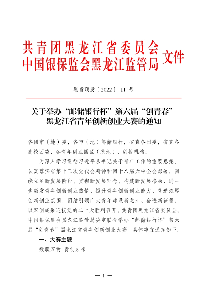 由共青团黑龙江省委员会和中国银保监会黑龙江监管局共同主办的“邮储银行杯第六届“创青春”黑龙江省青年创新创业大赛,请感兴趣的同学按照比赛要求进行报名,报名截止时间为5月18日,电子版材料发送至邮箱jwcdczx@hibu.edu.cn,纸质版材料提交至大学生创新创业指导中心。