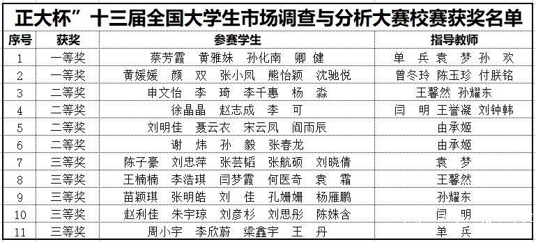 “正大杯”十三届全国大学生市场调查与分析大赛校赛获奖名单