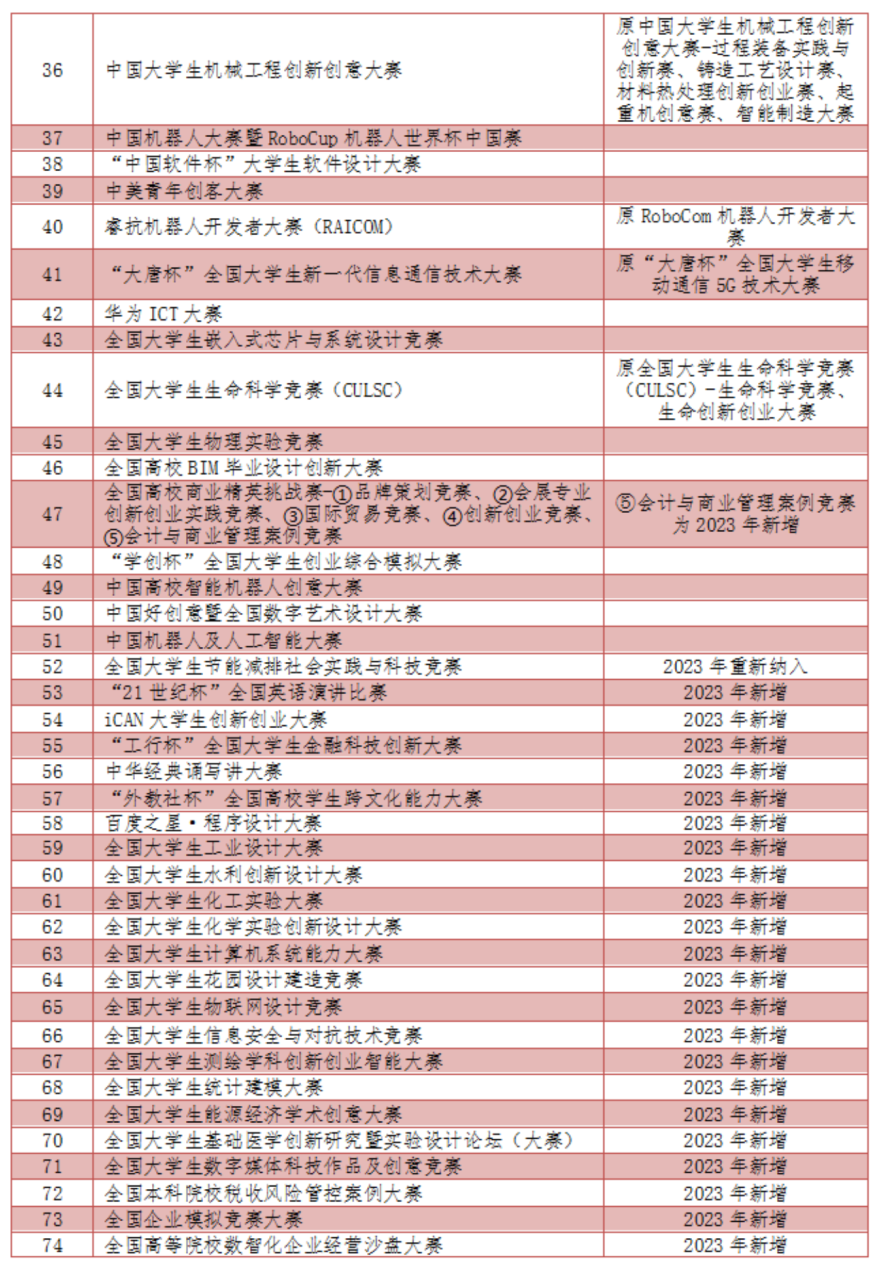 一、《2023全国普通高校大学生竞赛分析报告》竞赛目录