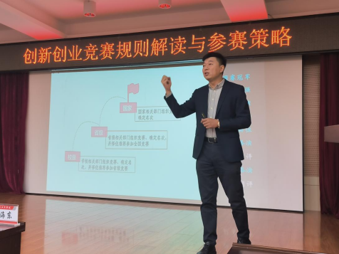 李海东老师首先介绍了中国双创教育的发展历程。随后强调,学生应了解各项比赛的竞赛规则,清楚竞赛流程,做到有的放矢;并根据时事热点的不同,及时调整对项目竞赛赛道的选择,要灵活转变思路,积极调整,迎合时代的发展变化;要大量阅读文献,理清文章和项目计划书的行文思路,掌握计划书的撰写技巧,开拓视野,把握国内外研究发展动态;在路演时注意突出PPT的重点及创新点,形成合理的逻辑关系,增强竞争力;最后传授了教师应如何指导学生开展创新创业竞赛的方法与要点,首先要培养学生们的创新意识,其次注重理论与实践的结合,为学生提供创新创业实践机会,提供激励机制激发学生创新创业的动力。