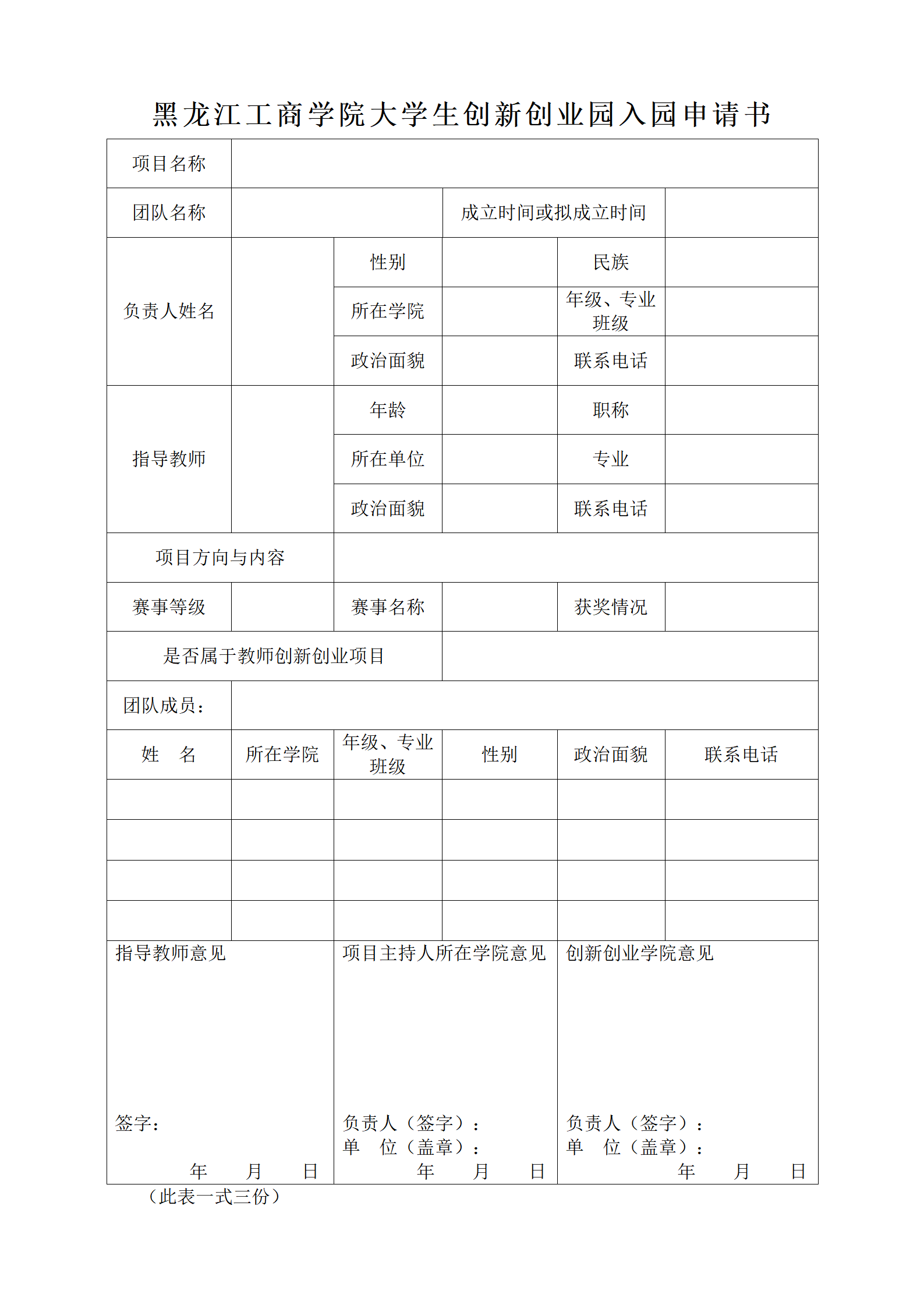 m体育【中国】股份有限公司大学生创新创业园入园申请书