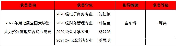 日前,商学院师生继连续六年蝉联“学创杯”全国大学生创业综合模拟演训活动全国总决赛特等奖(一等奖)后,再获佳绩,喜获2022年第七届全国大学生人力资源管理综合能力竞赛(踏瑞杯)全国总决赛一等奖。