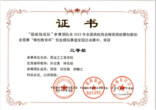 近日,由中国贸促会商业行业委员会、中国国际商会商业行业商会、中国商业经济学会主办,浙江精创教育科技有限公司提供竞赛软件技术支持的2023年全国高校商业精英挑战赛创新创业竞赛“精创教育杯”创业模拟赛道全国总决赛于线上落下帷幕。我校创新创业学院从校赛众多队伍中遴选出3支队伍参加省级复赛再到全国总决赛,三轮激烈竞争后最终荣获国家二等奖1项,国家三等奖2项。