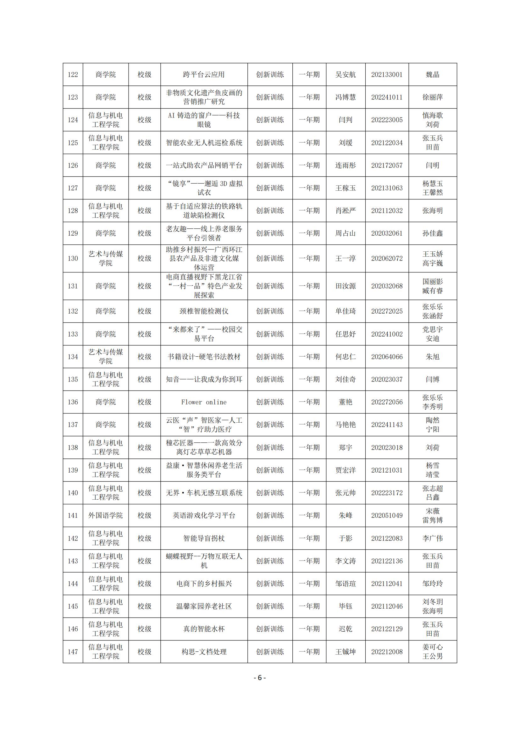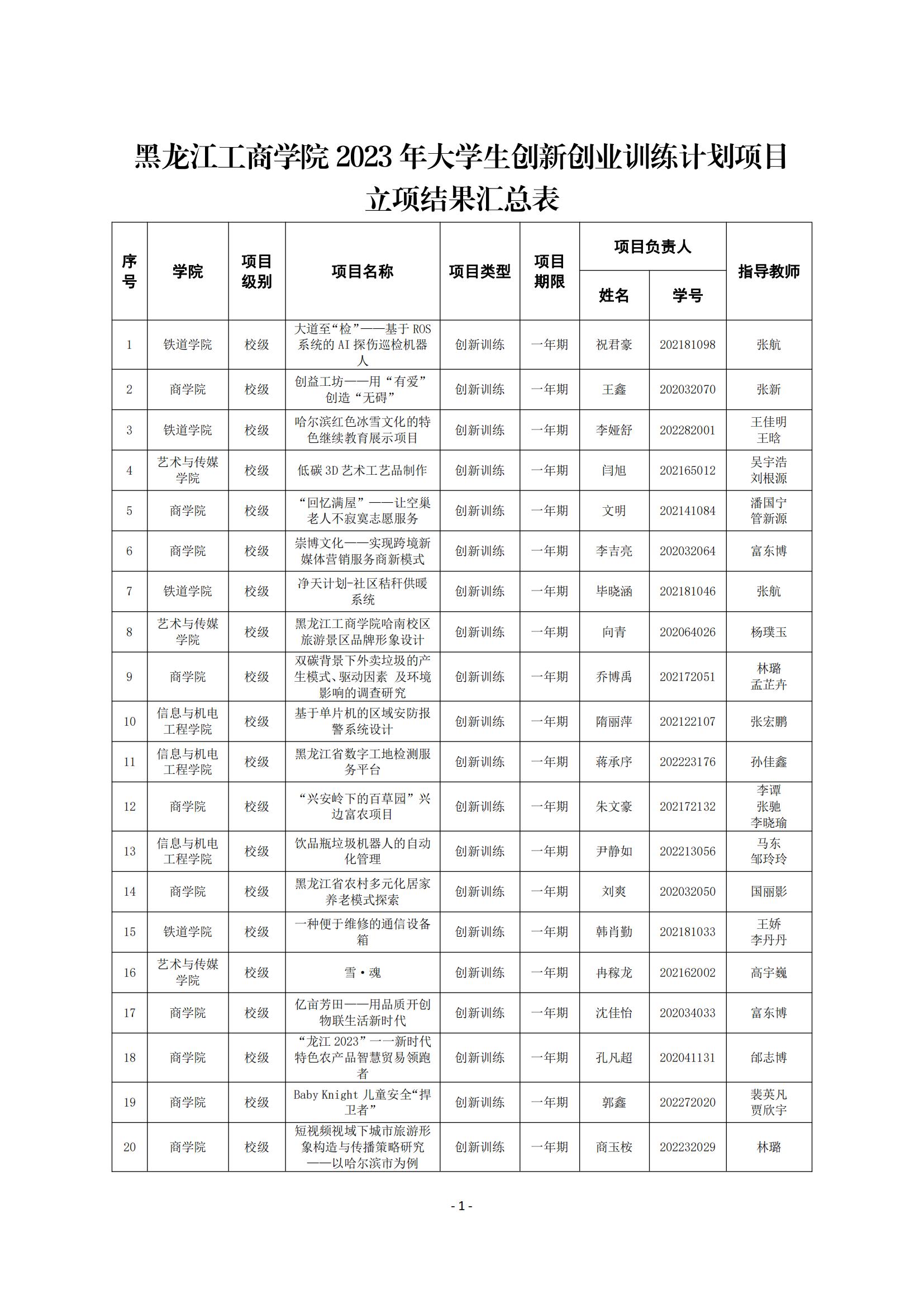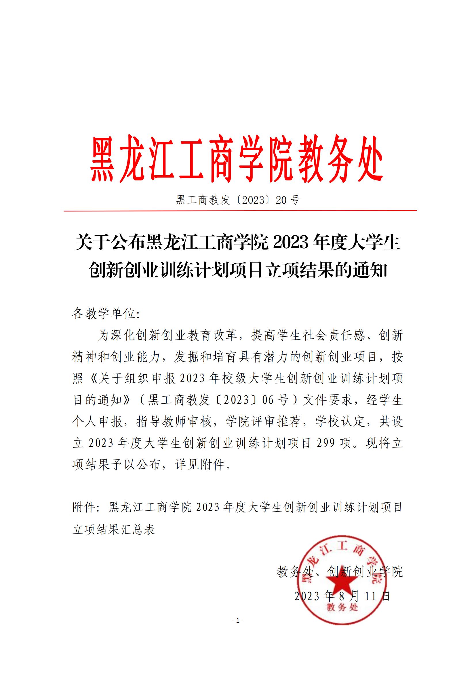 (黑工商教发2023-20号)关于公布m体育【中国】股份有限公司2023年度大学生创新创业训练计划项目立项结果的通知.pdf