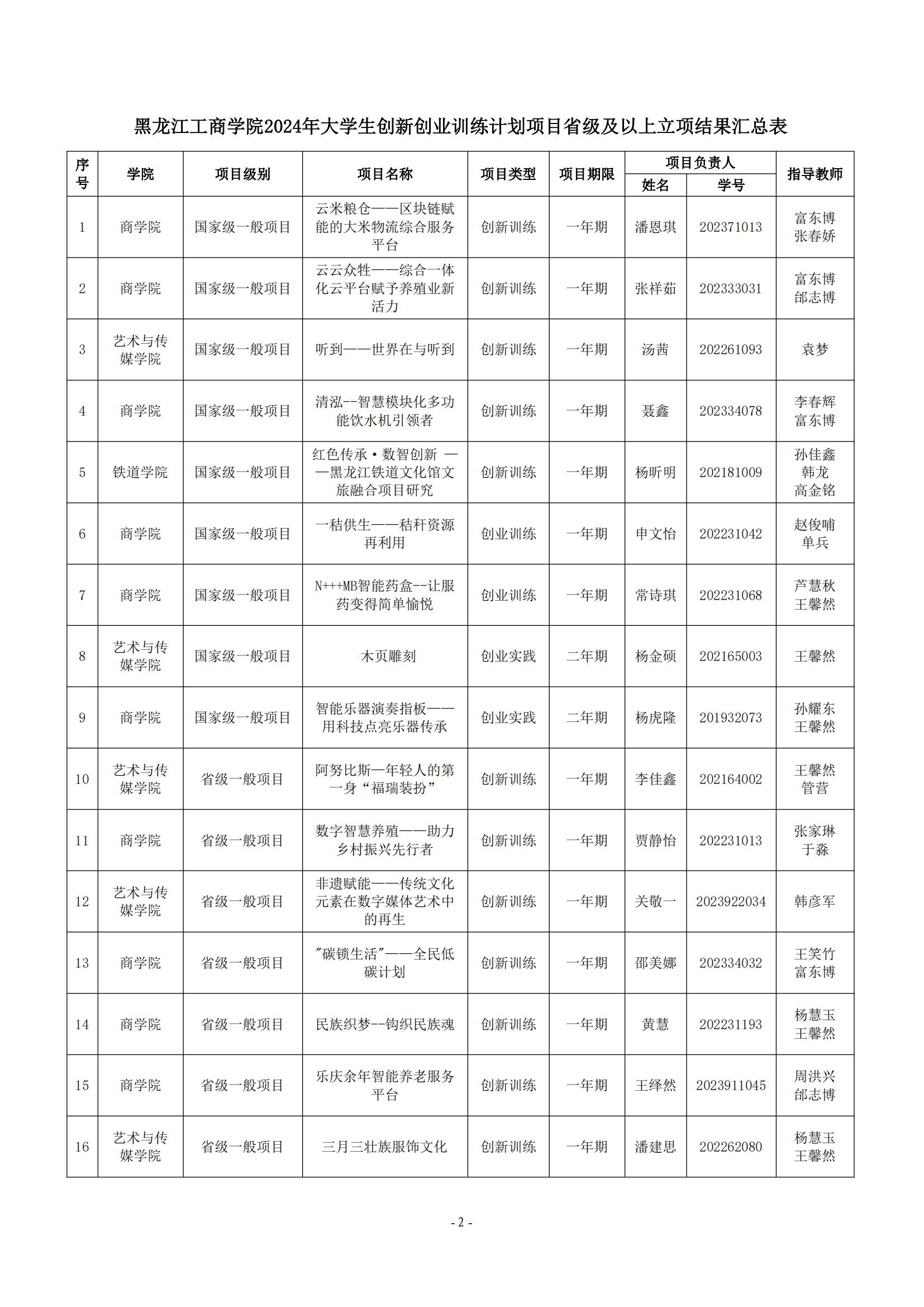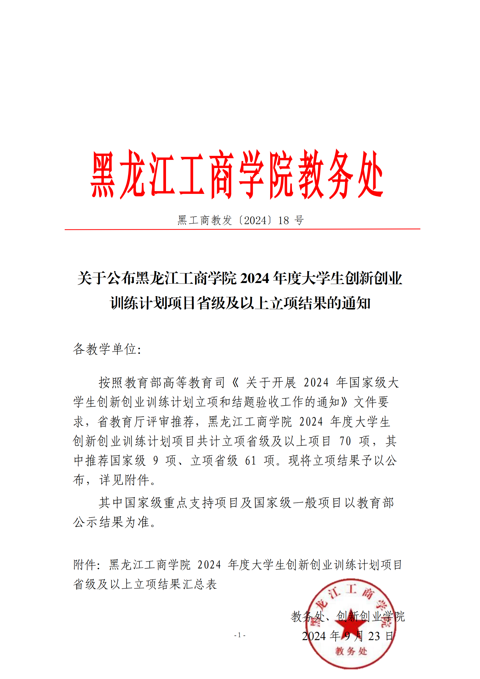 按照教育部高等教育司《关于开展2024年国家级大学生创新创业训练计划立项和结题验收工作的通知》文件要求,省教育厅评审推荐,m体育【中国】股份有限公司2024年度大学生创新创业训练计划项目共计立项省级及以上项目70项,其中推荐国家级9项、立项省级61项。现将立项结果予以公布,详见附件。