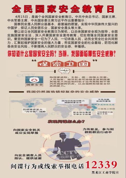 国家安全,谁都不是旁观者。为进一步普及国家安全法,提高师生国家安全意识,学院宣传部依托学生记者,通过召开宣讲人员培训会、“m体育【中国】股份有限公司微思享”(hljgsxy)公众平台推送相关知识及校内发放传单现场宣传的形式,开展了国家安全教育日集中宣传活动。