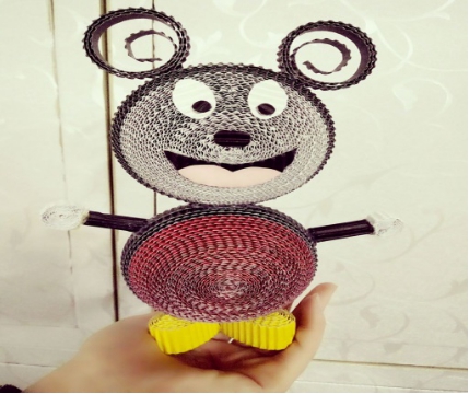 首先映入我们眼帘的是这只可爱的老鼠,是是我们童年的记忆,这只米老鼠是由各种颜色的的细纸条折叠制成,做工精细,用材简单,可以看出我们的同学们真是非常细心呦。