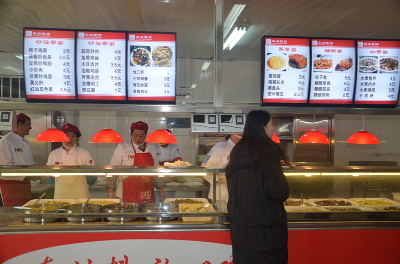 同时,为进一步满足不同人群的饮食需求,食堂三楼继续开设特色档口,严格按照招标程序,确定各档口的服务商家。此外,食堂的每一层都增设了“阳光公示屏”,屏幕直观显示菜品和菜价,在做到了饭菜价格透明的同时,也方便了师生点餐。从师生反馈来看,改造后的食堂无论从菜色、服务到就餐环境都有了很大的提高。教职工们对能够在整洁明亮舒心的环境里吃上安全可口的饭菜感到很满意。