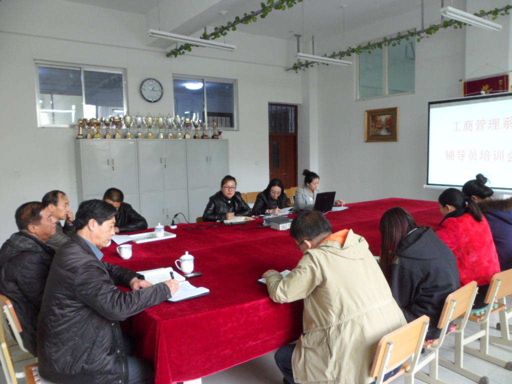 10月29日,工商管理系在系会议室举办首届辅导员培训会。学院院长助理兼学生工作处处长于致琦,工商管理系主任韩波、党总支书记高连斌及9名辅导员出席了会议。会议由党总支书记高连斌主持。
