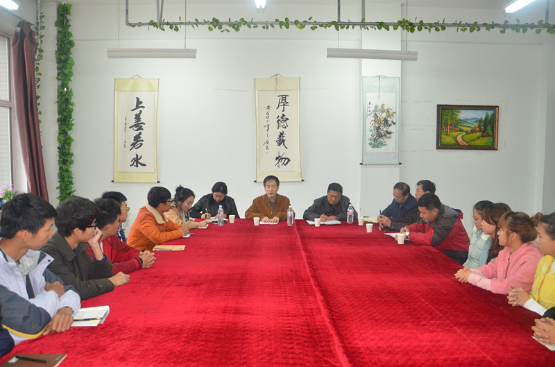 为更好的建设和发展我院今年新开设的工商管理(养老服务与管理)专业,解答该专业方向学生的疑问,工商专业发展大计,10月10日上午,我院在工商管理系会议室召开专题座谈会,专门探讨养老与服务专业方向的发展与建设。院长、党委书记宋有、副院长王晓伟、院长助理、学生处长于致琦、教务处长张幸刚、工商管理系主任韩波、党总支书记高连斌、辅导员管新源和20余名新生代表共同参加会议。会议由韩波主持。