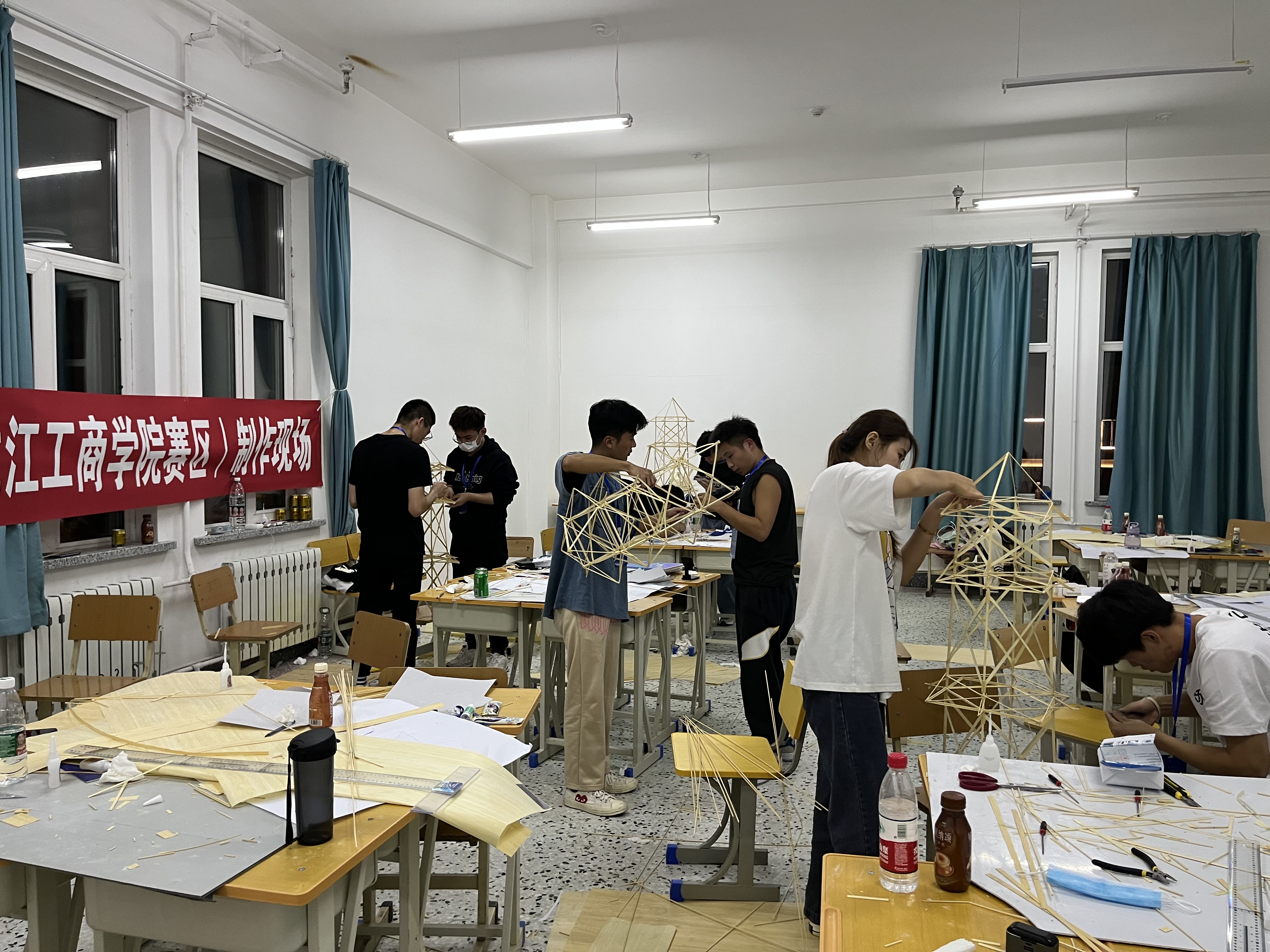 本次大赛以应县木塔为命题背景,进行《三重木塔结构模型设计与制作》,要求参赛学生对竖向荷载,扭转荷载,水平荷载等多种荷载工况下的空间结构进行受力分析、模型制作及加载试验。同学们结合日常刻苦训练的实践经验,线上进行了模型制作、现场加载和陈述答辩展示,全方位讲解了制作概念与思路,展现了在土木工程方面的应用能力、设计能力和创新能力,极大提升了解决复杂工程问题的能力。