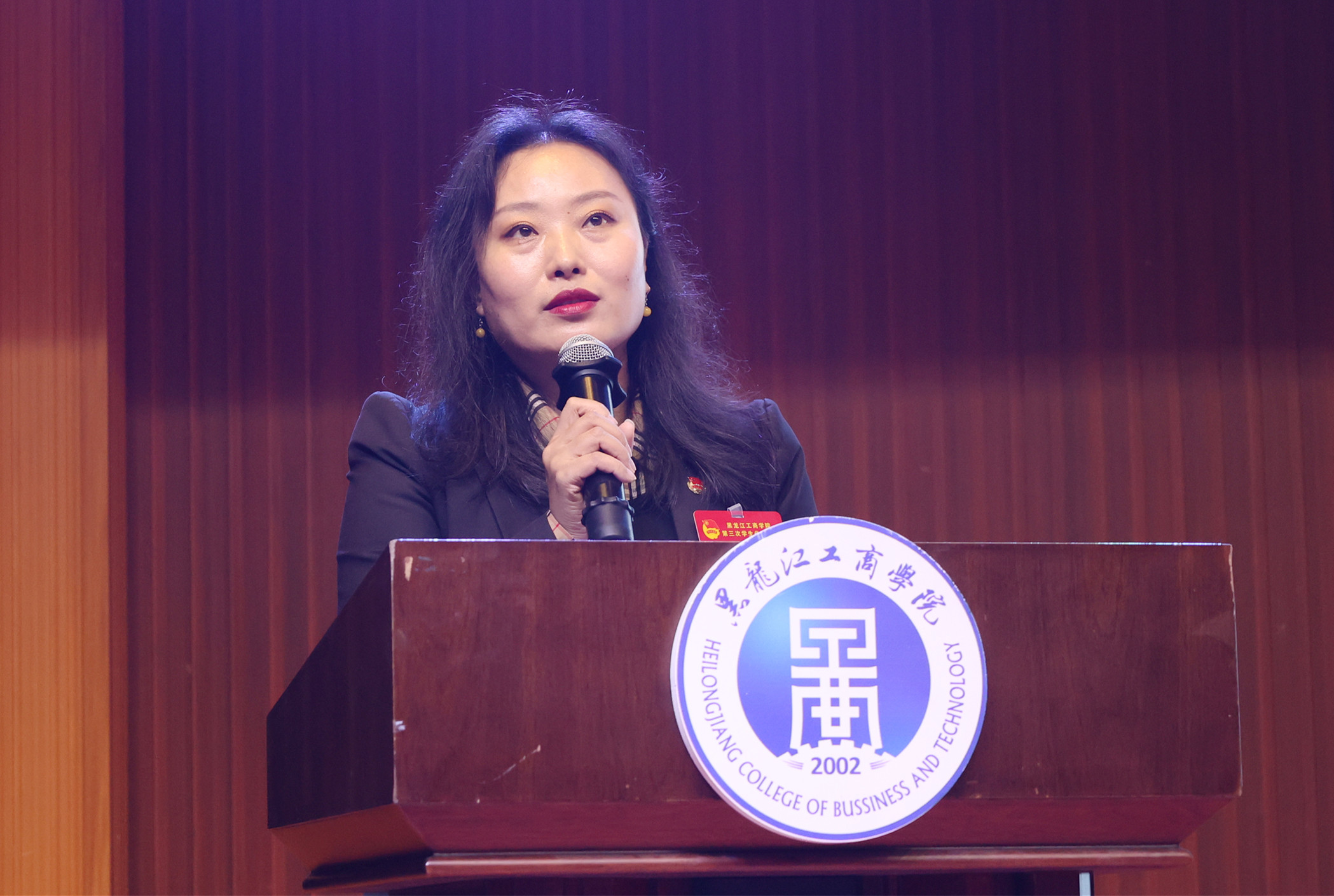 注:校学生会执行主席曲杨婧怡同学作《勇于自我革命服务同学成长 团结带领全校学生为建设成为高水平应用型工商大学而努力奋斗》报告