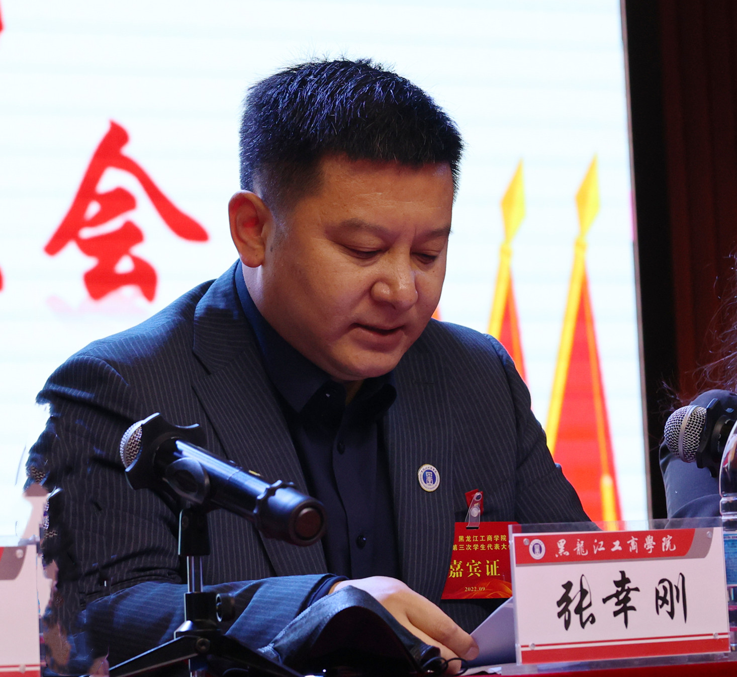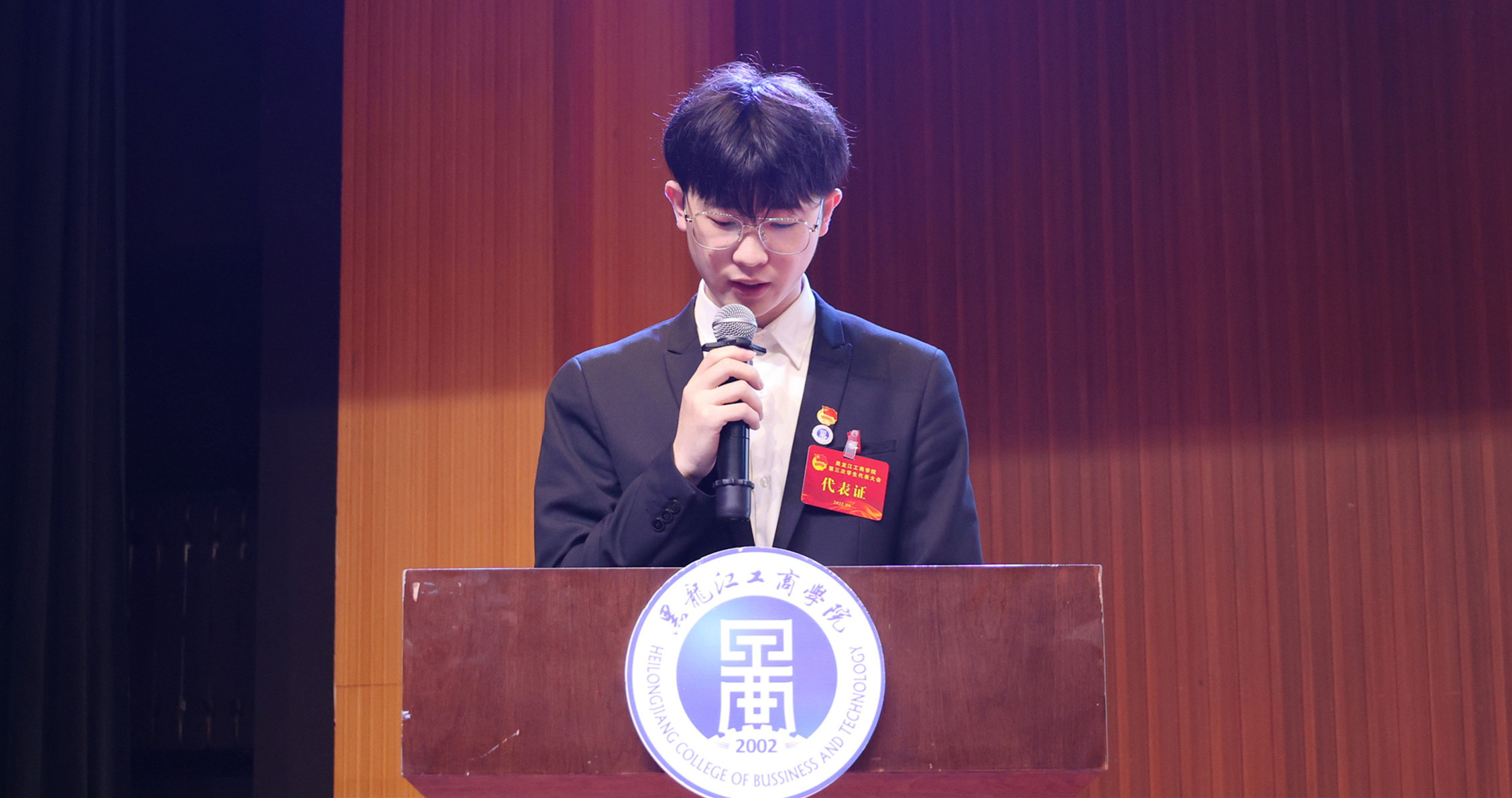 在喜迎党的二十大胜利召开之际,学校第三次学生代表大会胜利召开。会议采取两校区同步,实时直播的方式进行,主会场设在松北校区。副校长张幸刚出席会议并讲话,工会副主席殷和江、校团委书记张玉娜出席,黑龙江财经学院团委书记李晓璇、哈尔滨市学生联合会驻会执行主席刘雪微、东北农业大学校学生会执行主席邹慧婷代表兄弟院校线上致辞,各学院团总支负责同志、112名学生代表在指定会议地点参会,会议由校团委韩龙主持。