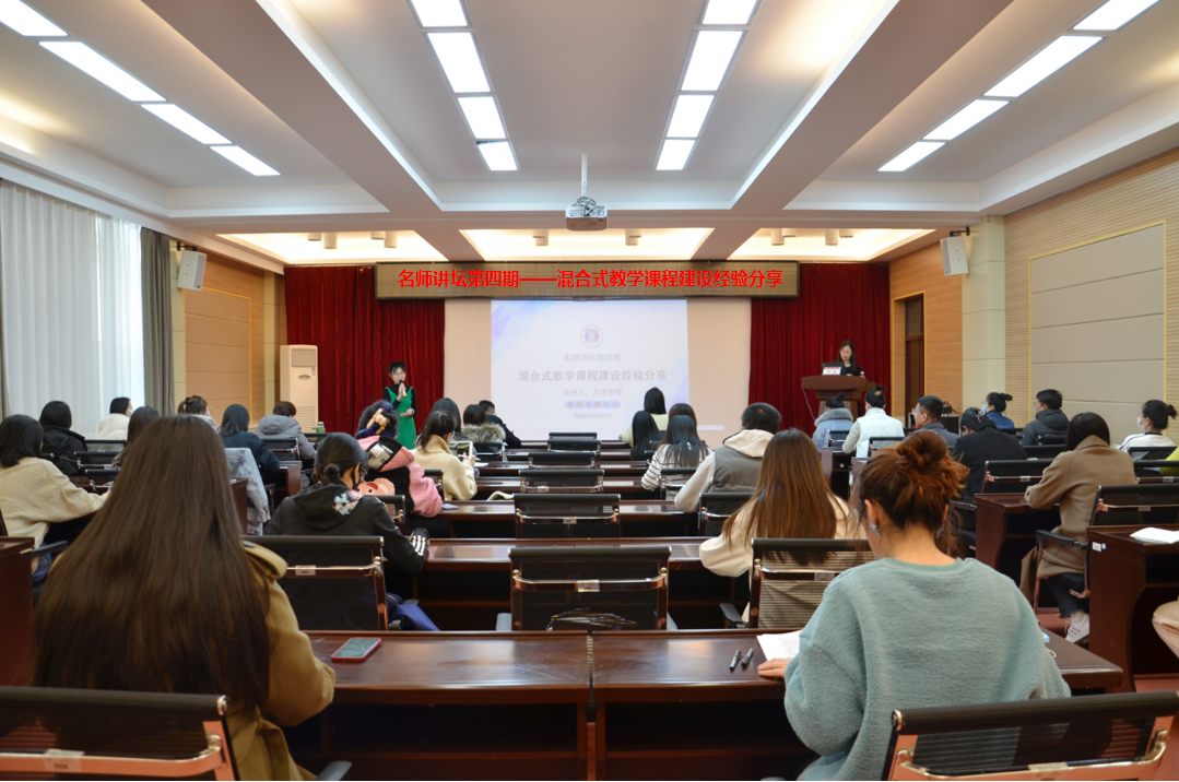 为发挥校内名师的示范引领作用,增强我校教师培训工作力度,10月27日,教师发展中心举办名师讲坛第四期活动。讲坛以线上线下相结合的形式举行,我校教学名师、外国语学院万波教授以《混合式教学课程建设经验分享》为主题做精彩报告。讲座由教师发展中心孙楠主持。