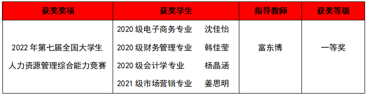 日前,商学院师生继连续六年蝉联“学创杯”全国大学生创业综合模拟演训活动全国总决赛特等奖(一等奖)后,再获佳绩,喜获2022年第七届全国大学生人力资源管理综合能力竞赛(踏瑞杯)全国总决赛一等奖。