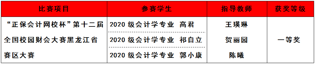 日前,由正保远程教育主办,正保会计网校提供技术支持,省高等教育学会支持举办的“正保会计网校杯”第十二届全国校园财会大赛黑龙江省赛区大赛落下帷幕。商学院学子代表学校参赛,从23所高校参赛队伍中脱颖而出,喜获一等奖。