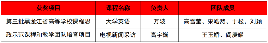 据悉,今年10月,省教育厅面向全省高校开展首批高校课程思政示范项目验收和遴选第三批示范培育项目及优秀教学案例工作,经学校遴选推荐、专家评审评议等程序,最终确定了立项建设第三批黑龙江省高等学校课程思政示范课程和教学团队培育项目205个,首批黑龙江省高等学校课程思政优秀案例125个。