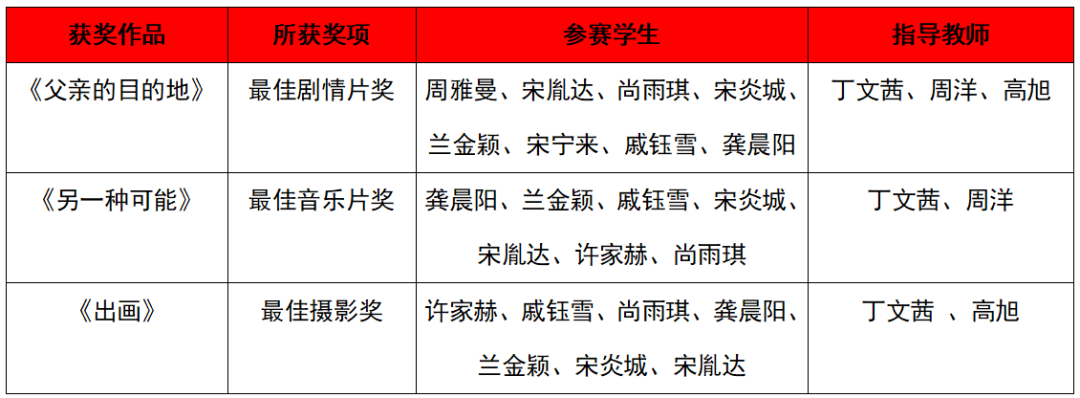 日前,“中国移动杯”2022年冰城高校创意微视频大赛获奖名单揭晓,经过大赛作品征集、展示、评审阶段后,50部优秀参赛作品脱颖而出,分获11项大奖。由我校艺术与传媒学院师生选送的作品《父亲的目的地》《另一种可能》《出画》分别摘得最佳剧情片奖、最佳音乐片奖和最佳摄影奖。