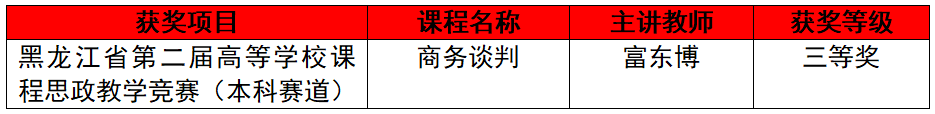日前,黑龙江省第二届高等学校课程思政教学竞赛(本科赛道)决赛落下帷幕,经校赛遴选推荐、省赛专家审核,全省各高校共88名教师线上同台竞技。我校商学院富东博副教授讲授的《商务谈判》课程喜获三等奖。