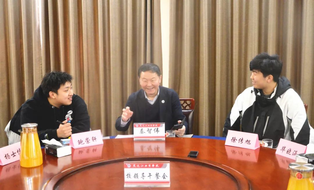 春潮涌,冰雪融,校园铆劲正当时,奋力开新局。3月16日中午,继我校松北校区举办兔年首场校领导午餐会后,哈南校区迎来了校领导午餐会。在饮食服务中心,校长秦智伟与来自信息与机电工程学院、铁道学院的10名学生代表围桌而坐,以餐叙的形式畅聊成才心声,畅谈学校发展。