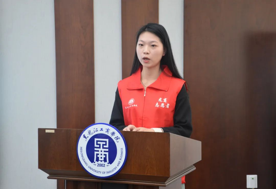 青年志愿者协会会长孙明月代表全校青年志愿者发言,她表示将大力弘扬“奉献、友爱、互助、进步”的志愿精神,在服务社区志愿服务、赋能社区发展的社会实践中,学知识、长本领、作贡献,贡献青春力量。