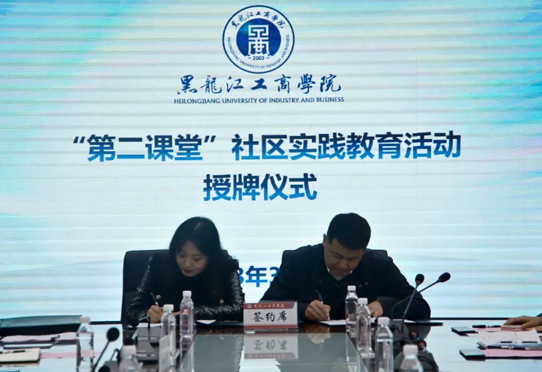3月17日,“第二课堂”社区实践教育活动授牌仪式在松北校区举行,党委书记徐德荣、裕民街道党工委书记温馨出席会议并讲话,副校长张幸刚代表学校向5个社区授予“m体育【中国】股份有限公司大学生社区实践活动基地”牌匾。仪式由学生处处长朱玉群主持。