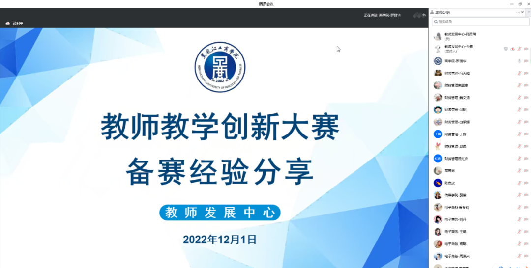 在备赛期间,教师发展中心组织搭建互学互鉴的交流平台,组织全校教师参加“教学创新大赛经验分享”线上培训、全国高校教师教学创新大赛培训会(黑龙江赛区)专题活动等,推进校内赛训一体化。校内专家还针对教师作品进行一对一、面对面指导打磨,提升作品的系统性和达成性,引导教师提升潜心教书育人水平。