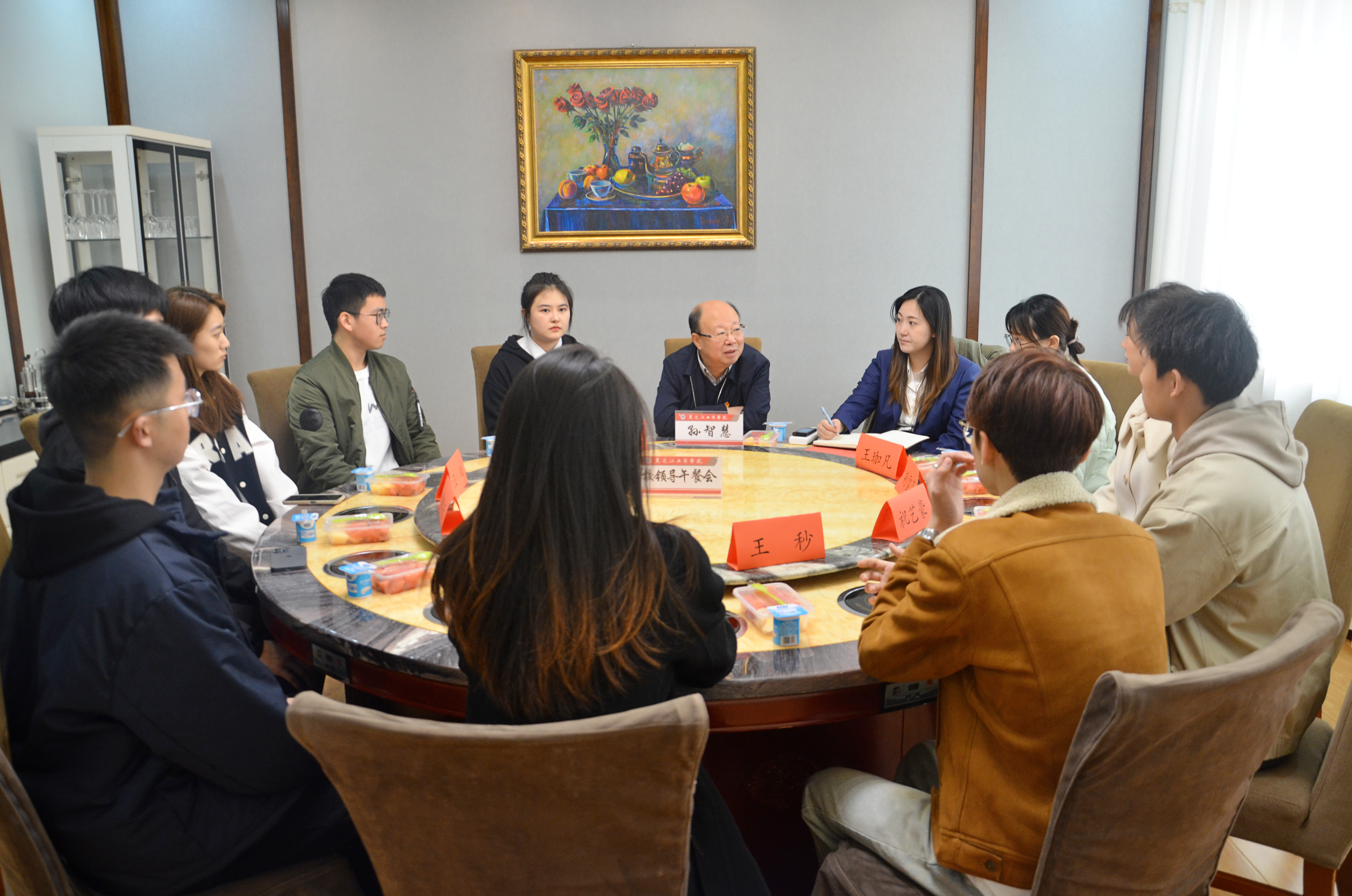 本次午餐会以“学在HIBU”为主题,同学们围绕改进教育教学、加强学风建设、开展社会实践、提升“双创”能力等内容,进行了深入热烈的交流。孙智慧分享了自己的大学生活体会,鼓励同学们珍惜大学时光,充分利用学校优质学习环境和学习资源,多读书、多学习、多思考,不断提升自己的专业能力和职业素养,为未来职业发展打下坚实基础。