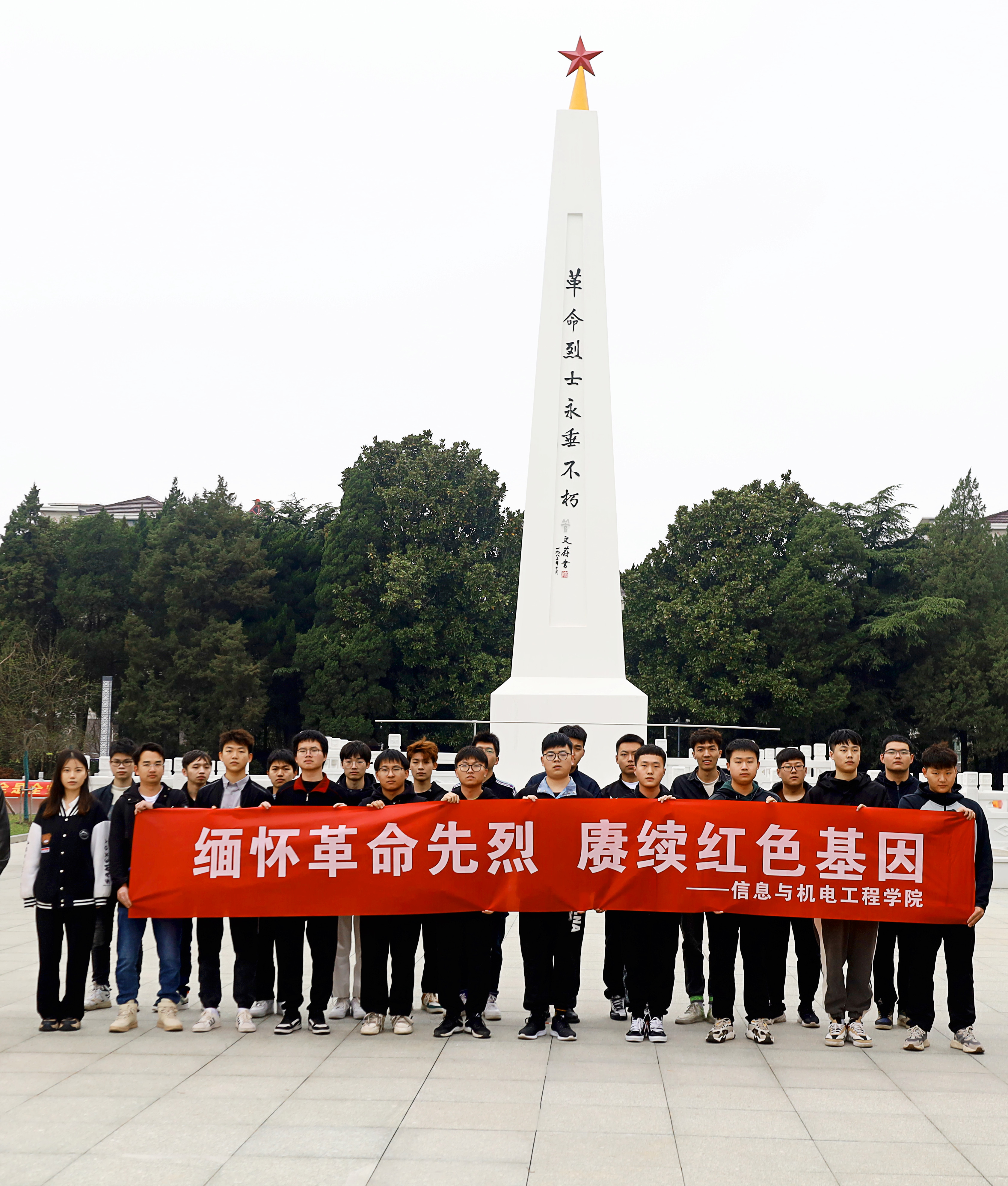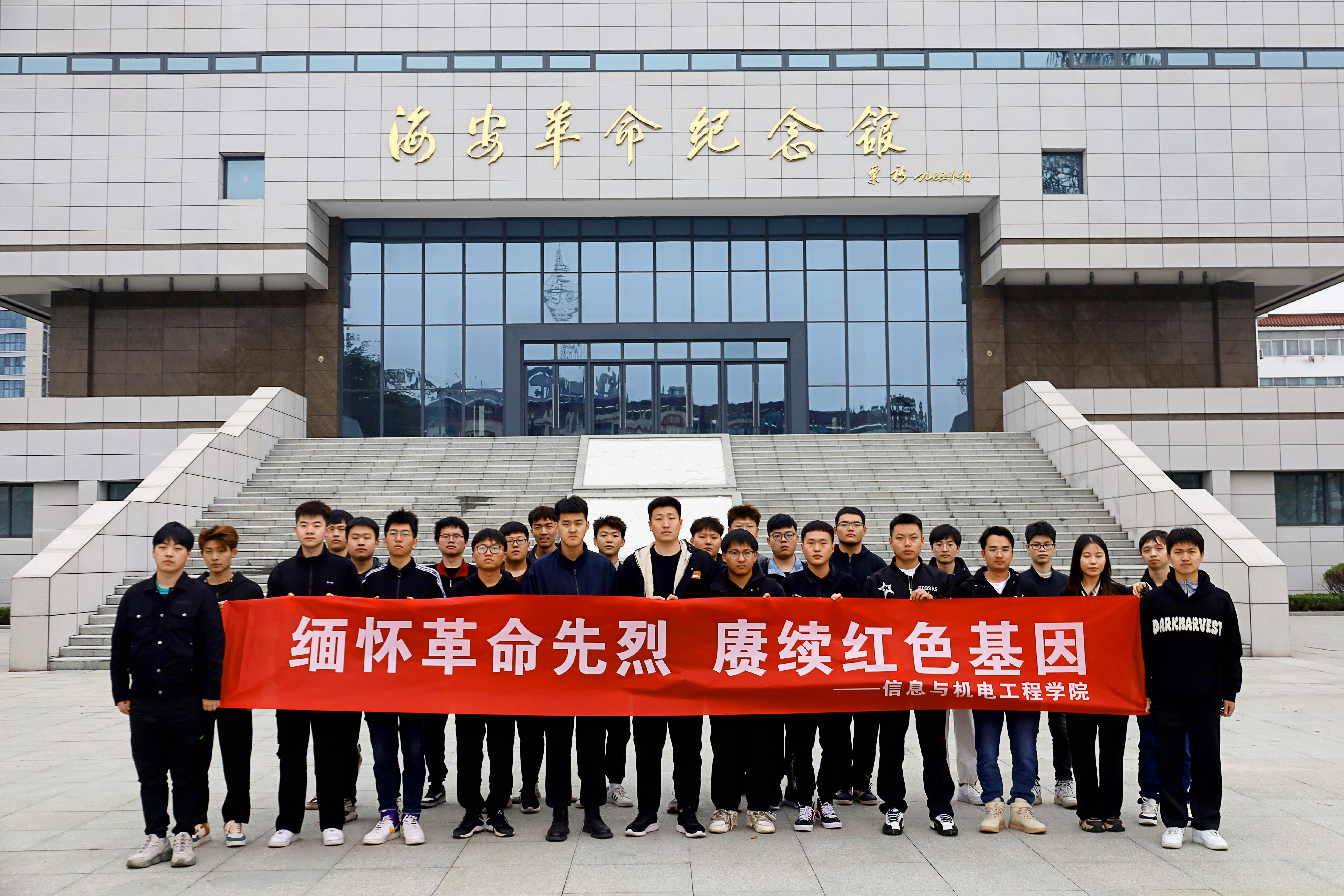 在江苏海安,入驻学校长三角产教融合园区开展专业实训和研学实践的信息与机电工程学院师生,来到海安市烈士陵园和海安革命纪念馆,聆听革命英烈许党报国的英雄故事,向烈士敬献花篮,重温入党、入团誓词,缅怀英烈崇高精神,表达无限崇敬之情。