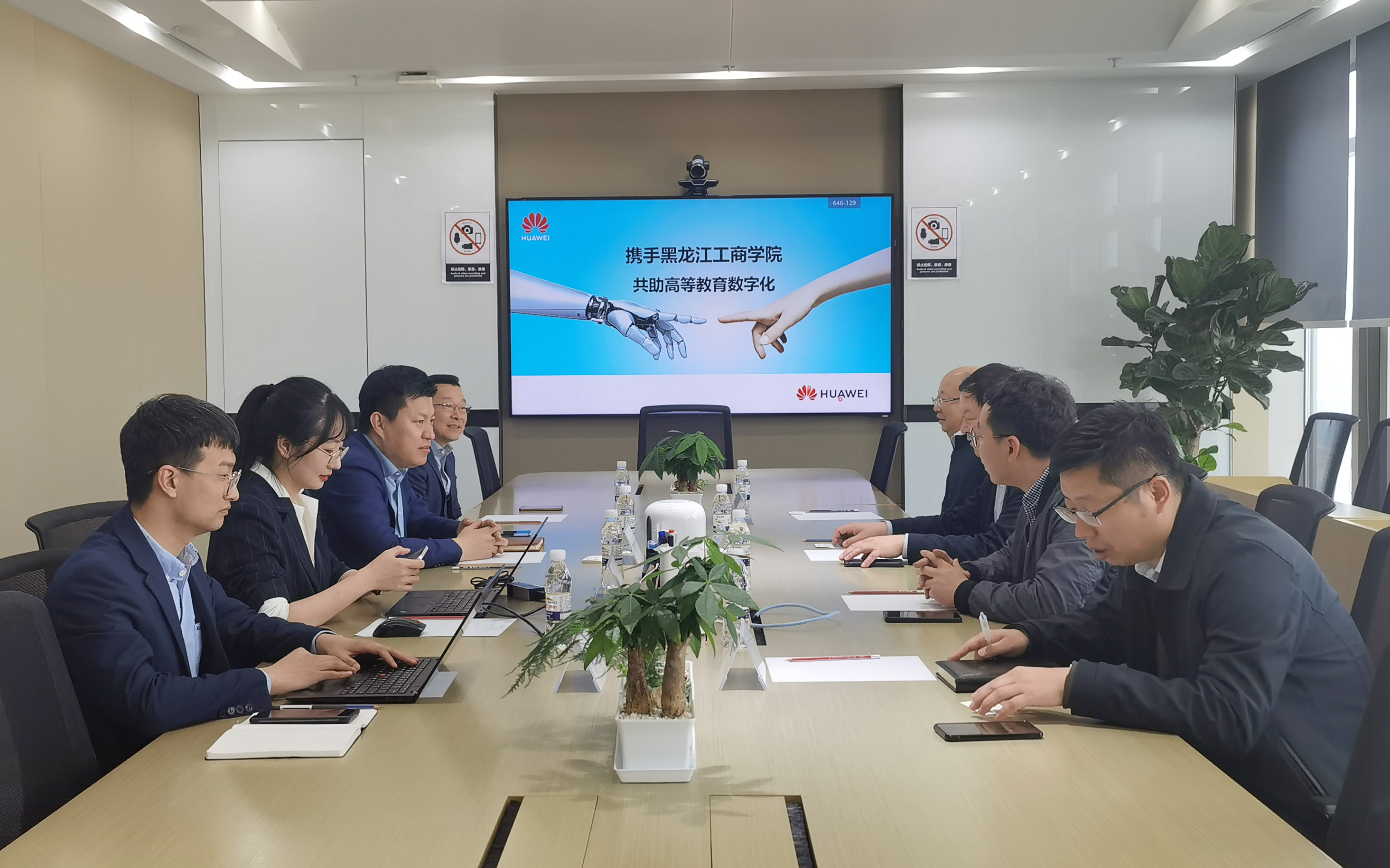 4月17日,校长秦智伟、副校长孙智慧赴华为公司黑龙江总部,开展访企拓岗专项行动。华为云黑龙江总经理蒋魁强、华为云院校合作经理马胜男、华为云解决方案架构师李兵、黑龙江省经济学会常务理事刘晓明参加洽谈会。