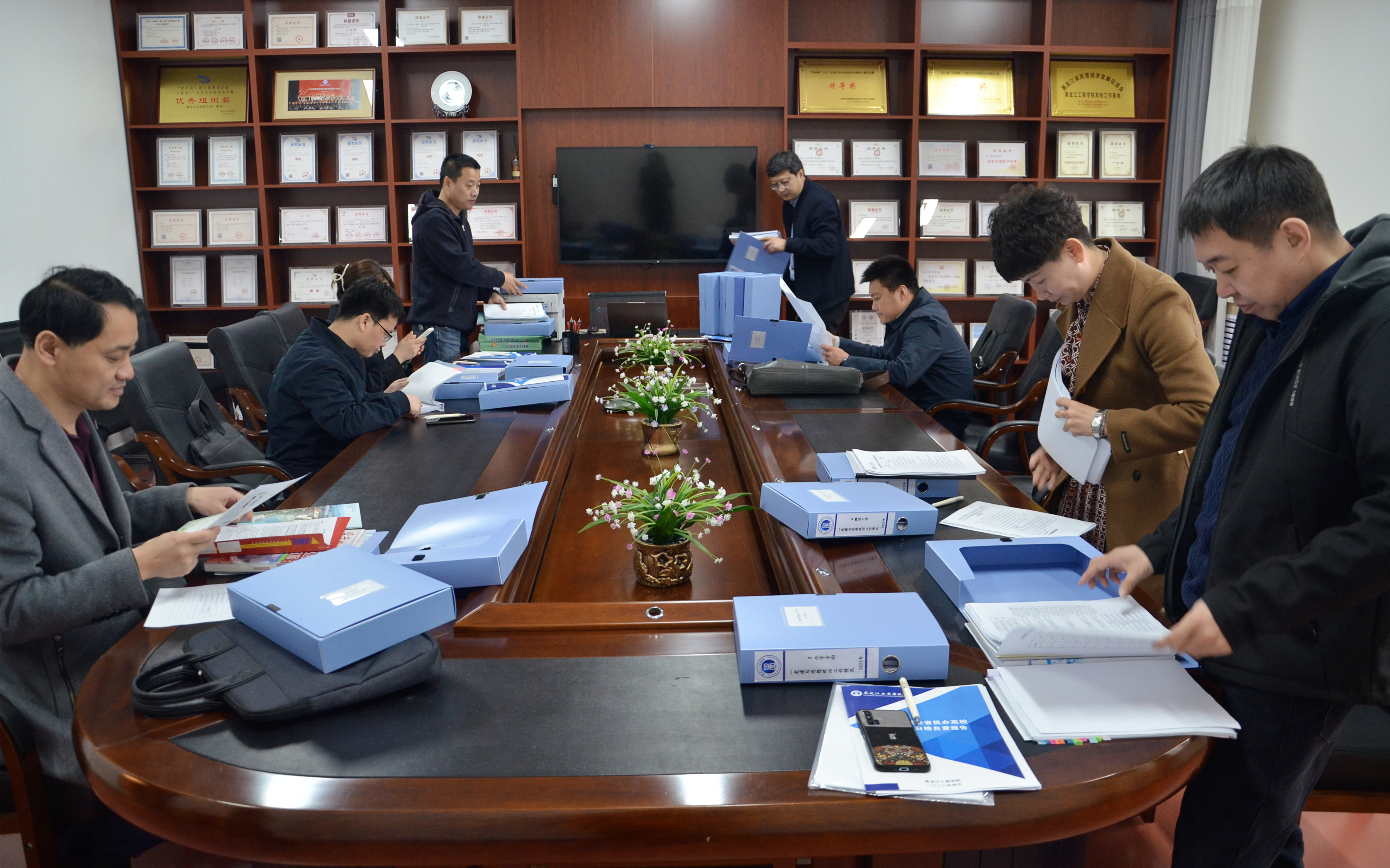 汇报会结束后,检查组对照指标体系,通过查阅资料、座谈交流、问卷调查、实地考察等方式,全面了解办学治校情况。