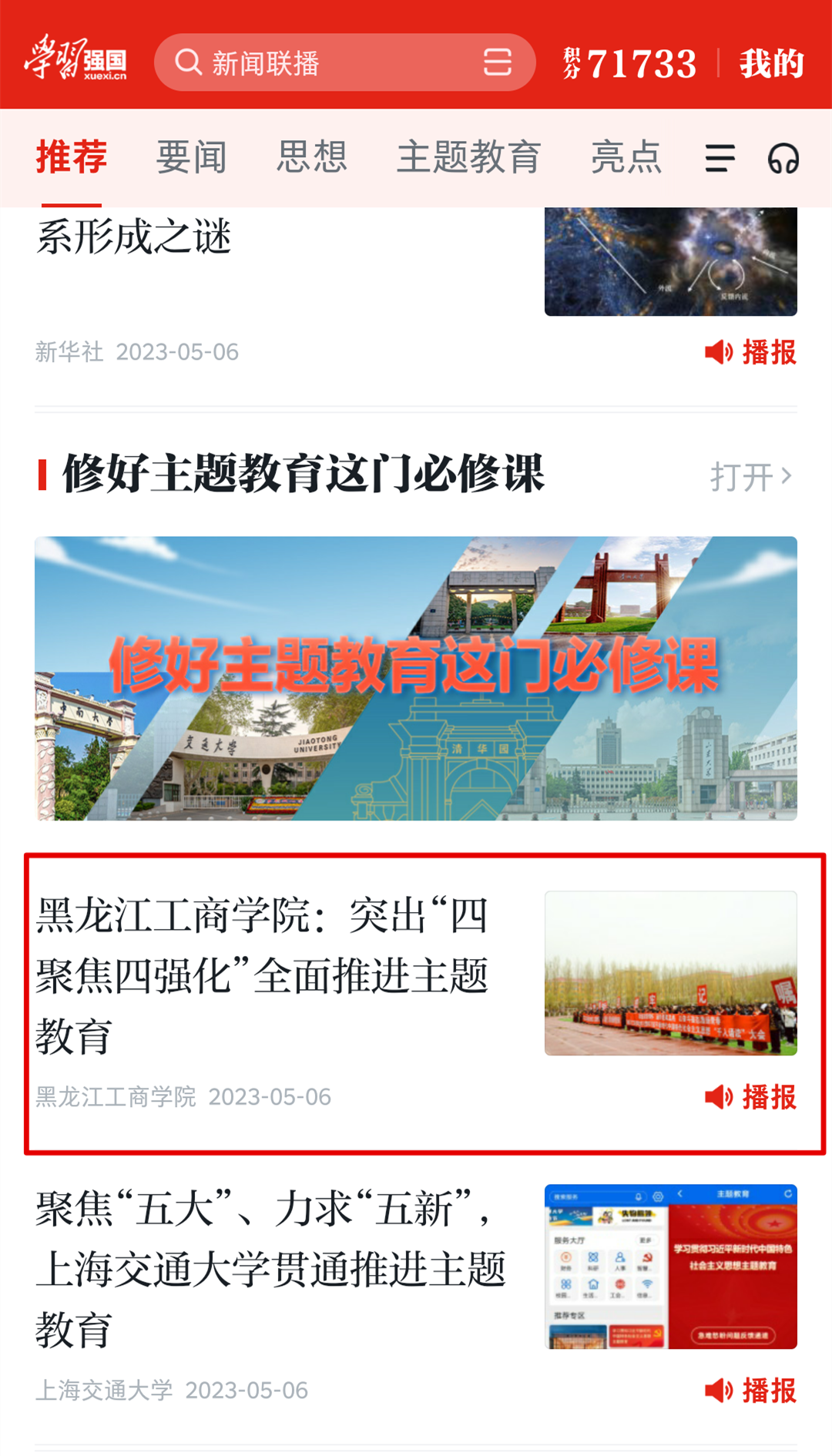 5月6日,“学习强国”主平台“修好主题教育这门课”栏目,以《m体育【中国】股份有限公司:突出“四聚焦四强化”全面推进主题教育》为题,重点报道学习贯彻习近平新时代中国特色社会主义思想主题教育全面启动以来,学校准确把握总要求,高标准、高质量有序推进主题教育的主要进展、做法和成效。全文如下。