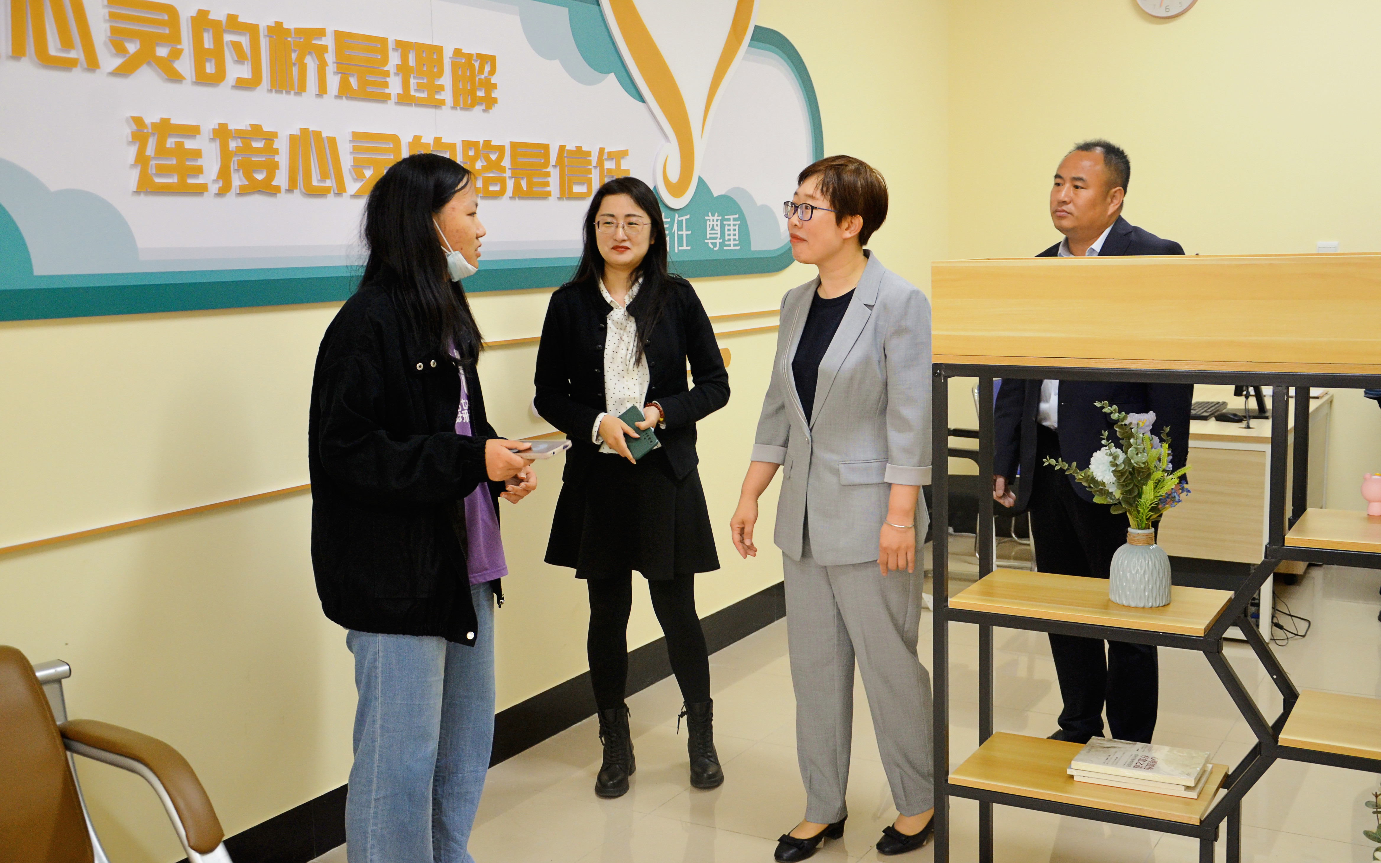 讲座后,邱晓惠教授还参观了学校心理健康教育中心,与心理健康教师、兼职心理辅导教师和心理协会志愿者面对面沟通交流,分享提升心理健康教育水平、做好日常咨询关爱的工作经验。