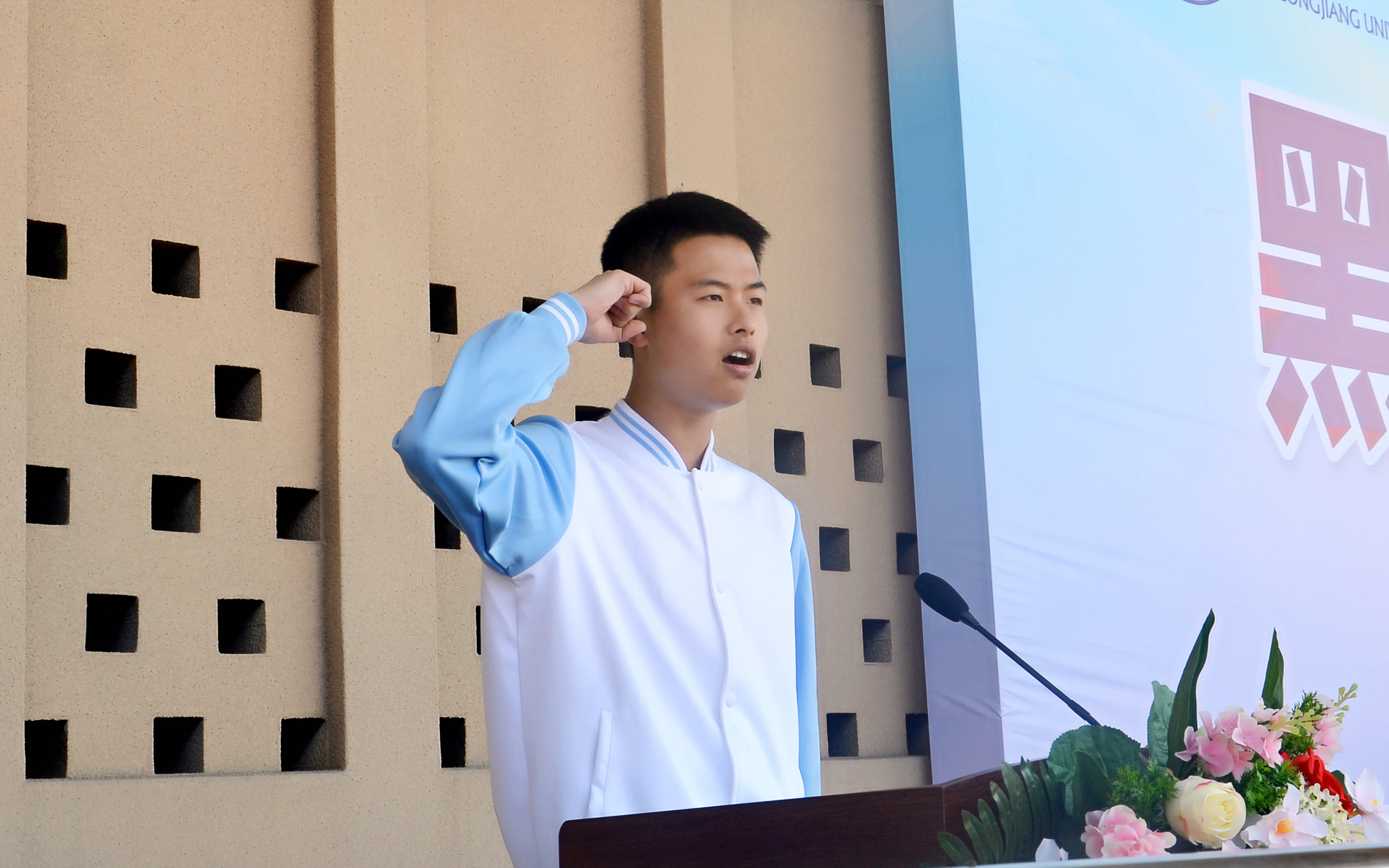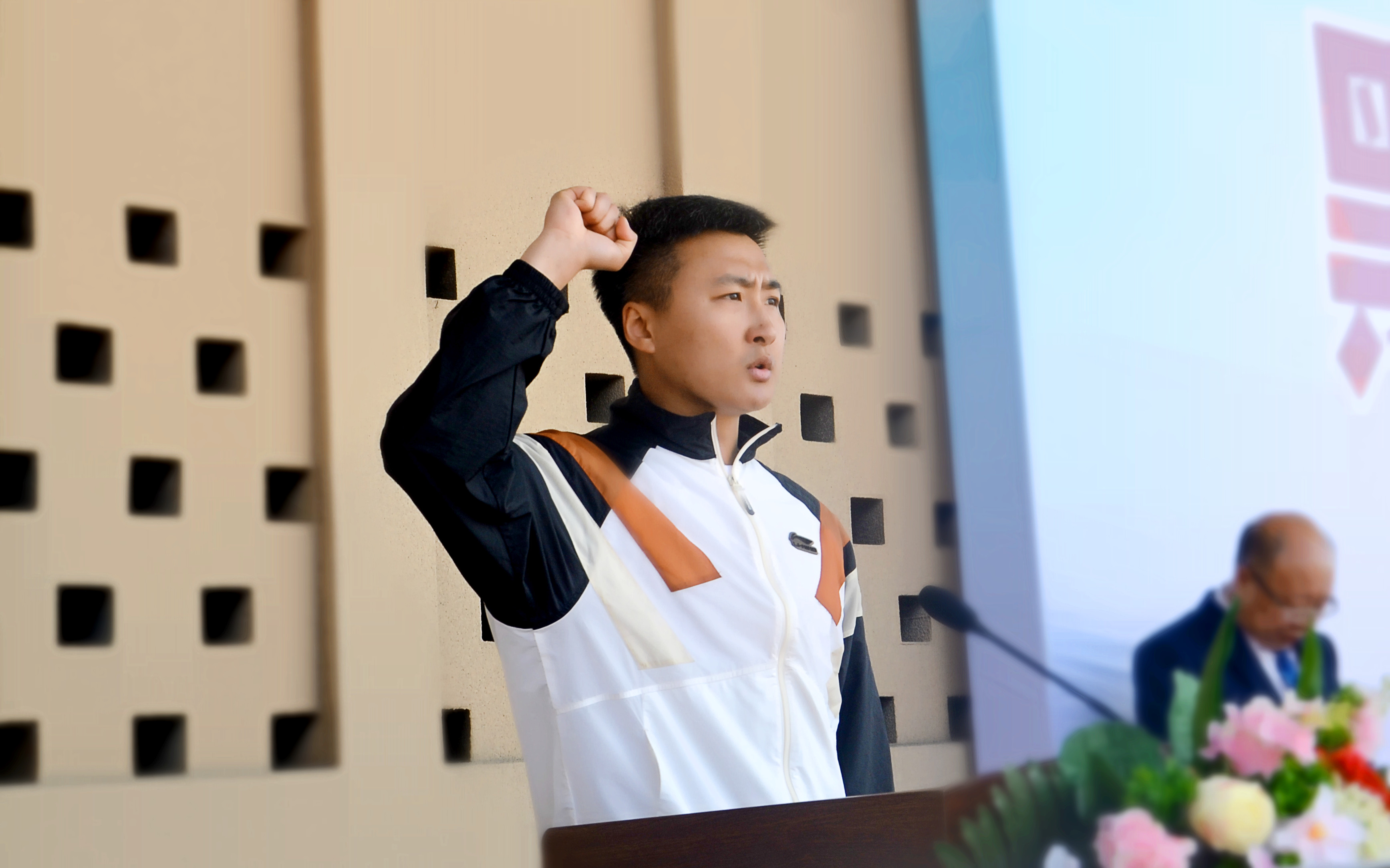 注:运动员代表、信息与机电工程学院2022级软件工程专业张贺然宣誓