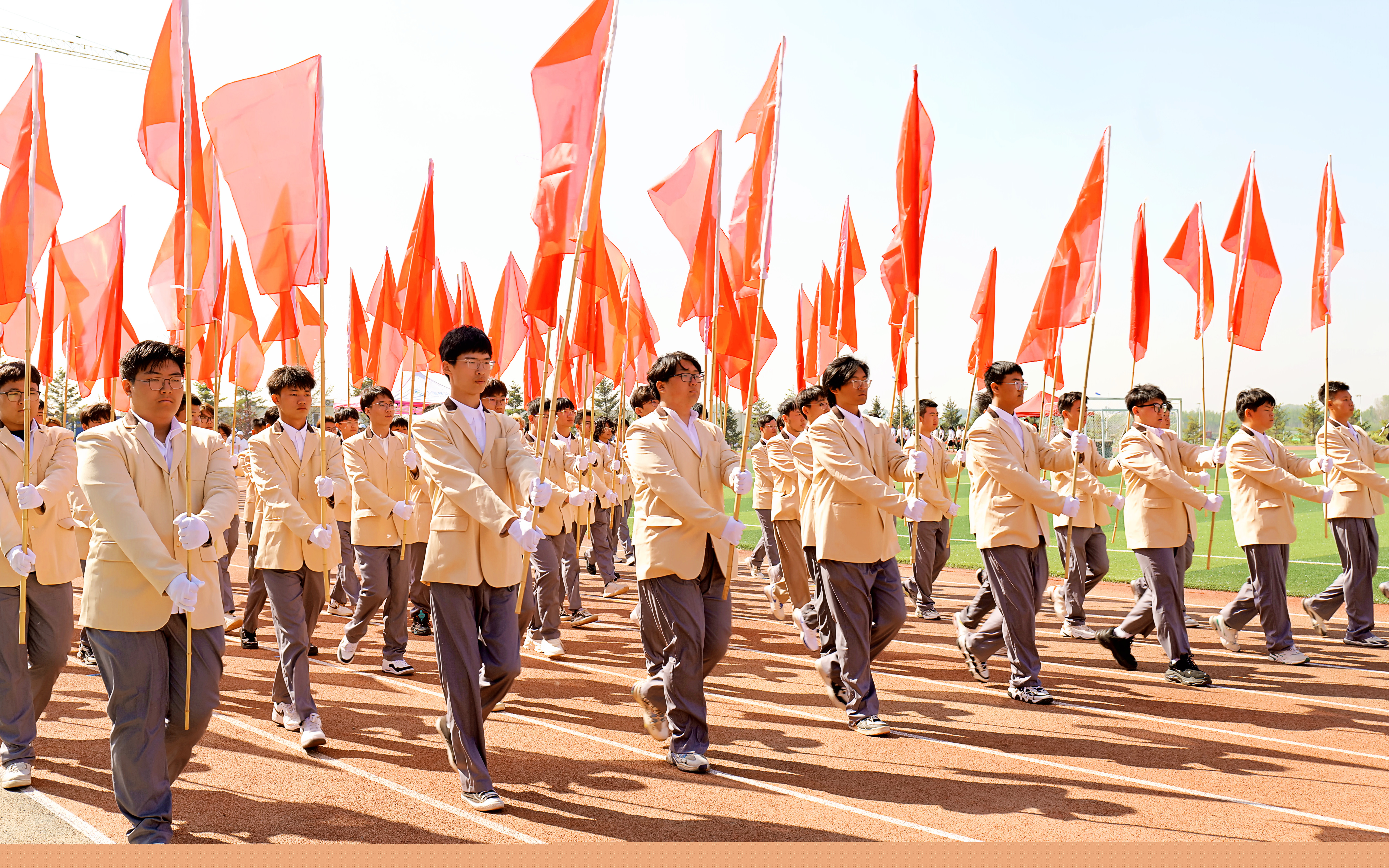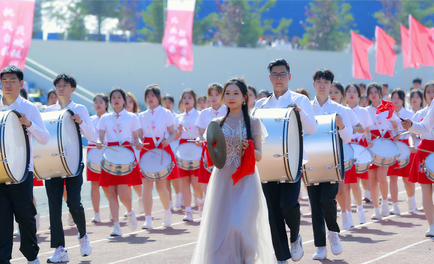 上午八时,伴着激昂的旋律,由师生组成的8支意气风发的检阅队伍,在国旗护卫队、鼓乐队、刀旗队和花束队的引导下有序入场。各检阅方队步伐铿锵、精神抖擞,展示了师生蓬勃的青春活力和勇攀高峰的运动精神。