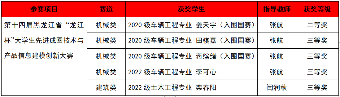 日前,由黑龙江省普通高等学校创新创业教育指导委员会、黑龙江省工程图学学会主办,哈尔滨工业大学承办的第十四届黑龙江省“龙江杯”大学生先进成图技术与产品信息建模创新大赛落下帷幕,大赛共吸引哈尔滨工业大学、哈尔滨工程大学等省内20余所工科院校参赛,铁道学院代表学校参加机械类和建筑类两个赛道的比赛,最终获得二等奖一项,三等奖四项,其中有三位参赛学生入围国赛,获奖等级、数量再创新高。