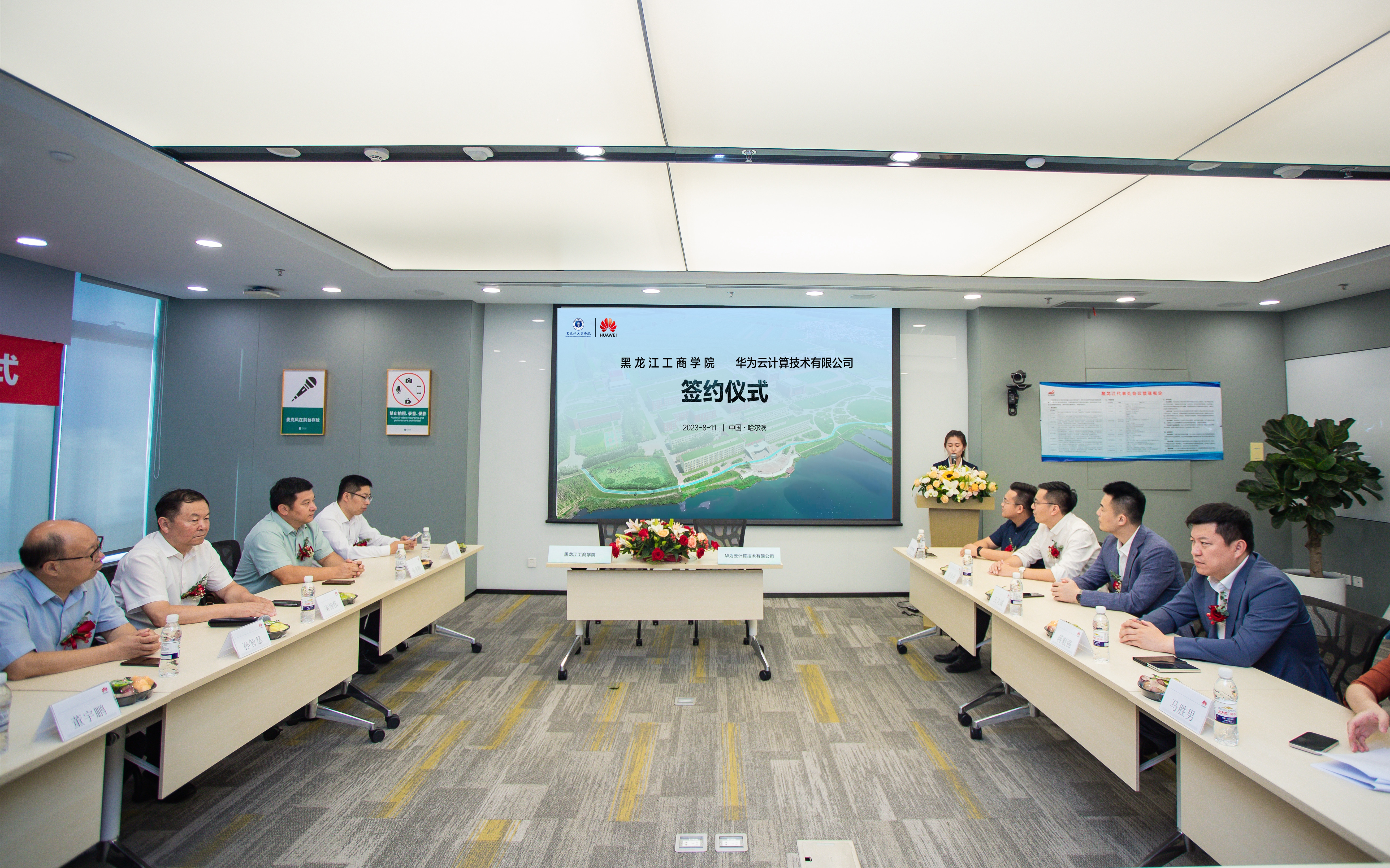 8月11日,我校与华为云计算技术有限公司校企合作协议签约仪式举行。校长秦智伟与华为云黑龙江总经理蒋魁强出席并签署合作协议,副校长孙智慧、张幸刚,华为云黑龙江副总经理王文成出席活动。华为云黑龙江总经理助理刘艺璇主持签约仪式。