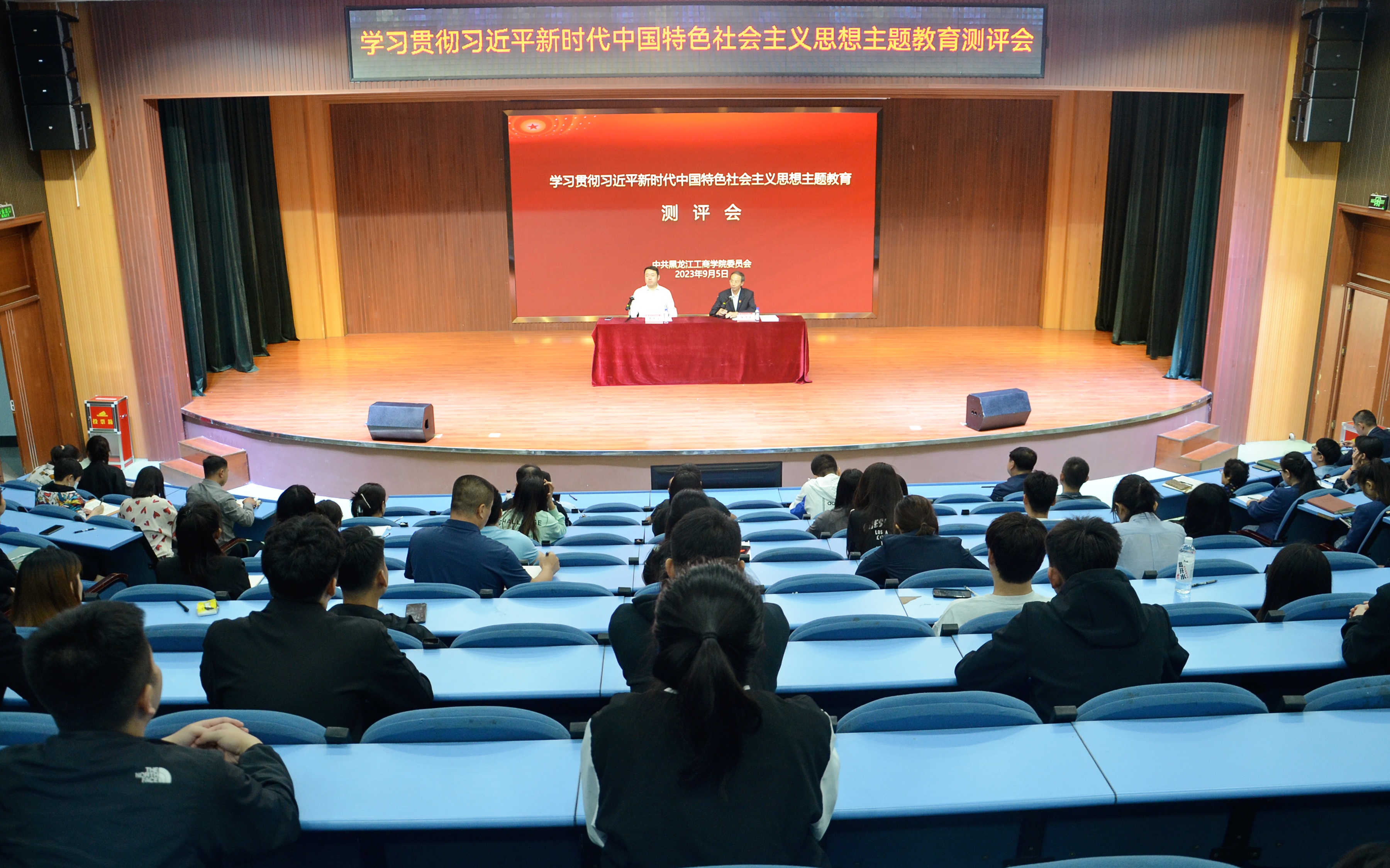 会上进行了主题教育现场测评,各级领导干部、基层党组织书记代表,一线教师、辅导员、学生、行政后勤人员等各方面代表共100人参加会议。