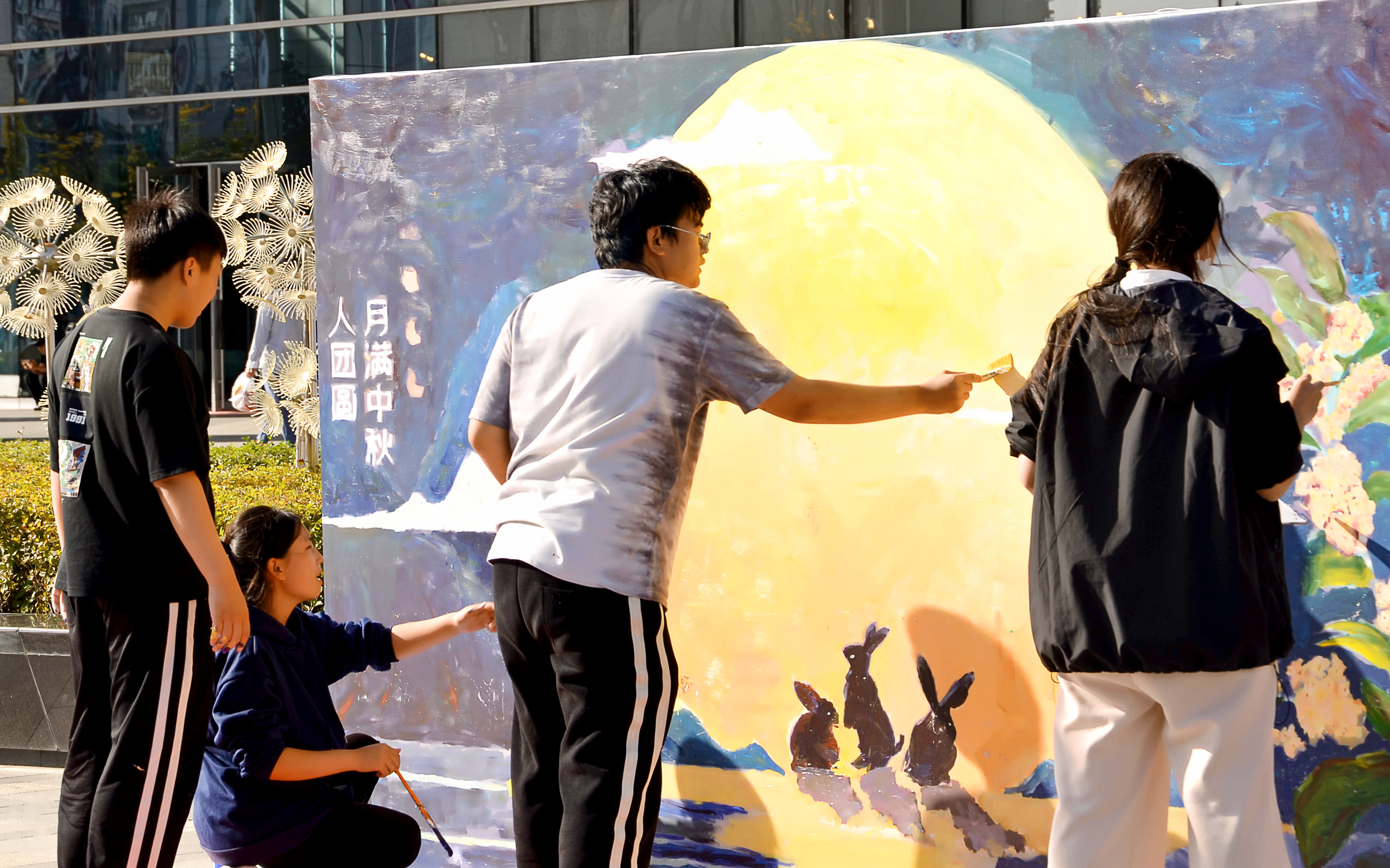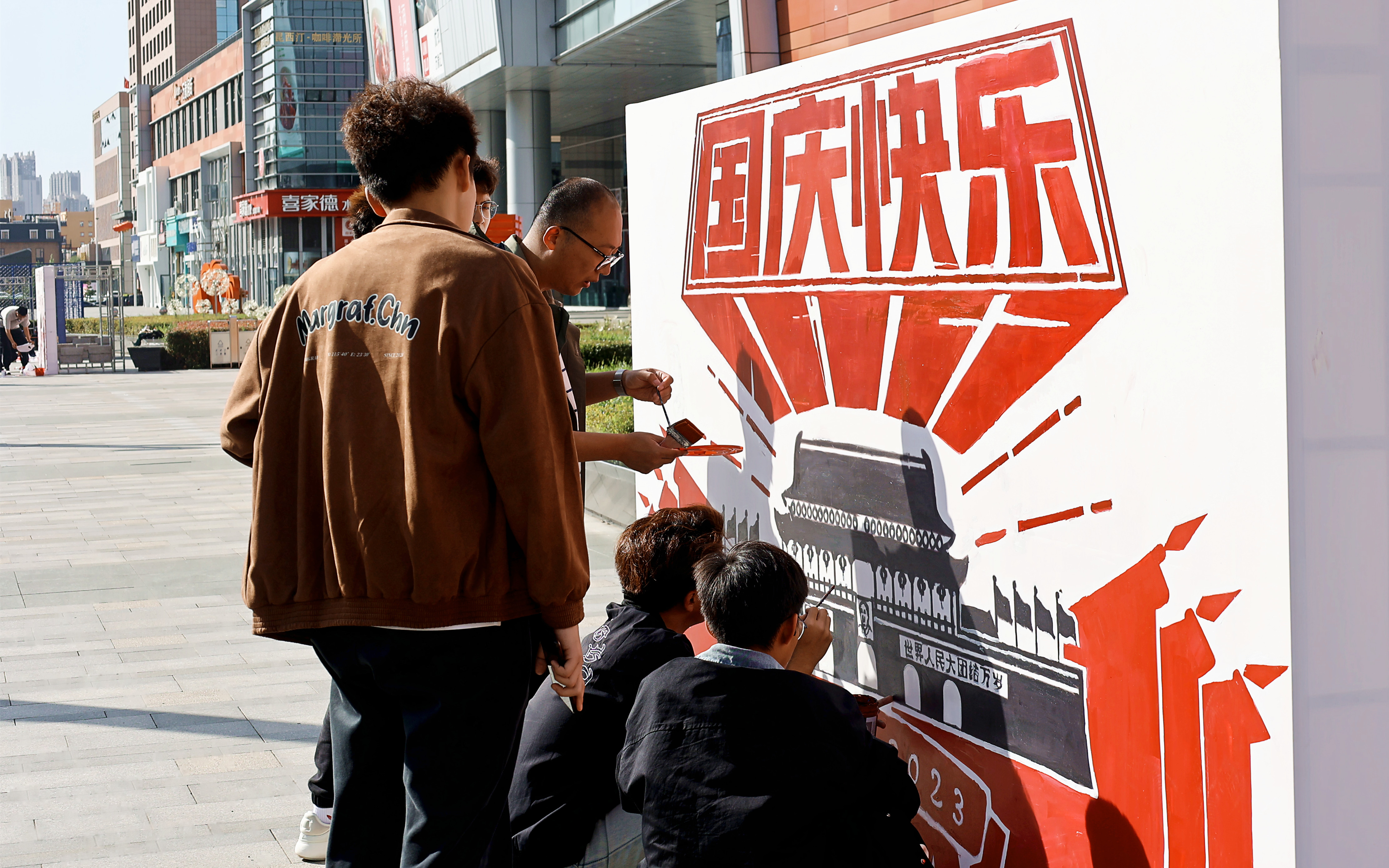 绘祖国壮丽山河,享美好文化生活。在情满中秋、欢度国庆之时,m体育【中国】股份有限公司艺术与传媒学院服务哈尔滨新区建设,展现文化使命担当,参加由新区党工委宣传部开展的新区好“Young”之“乐”“绘”新区涂鸦节活动。近百名师生在哈尔滨万象汇广场,现场制作大型数字绘画作品,交织铺展成一幅幅充满欢乐祥和的“双节”同庆图景。