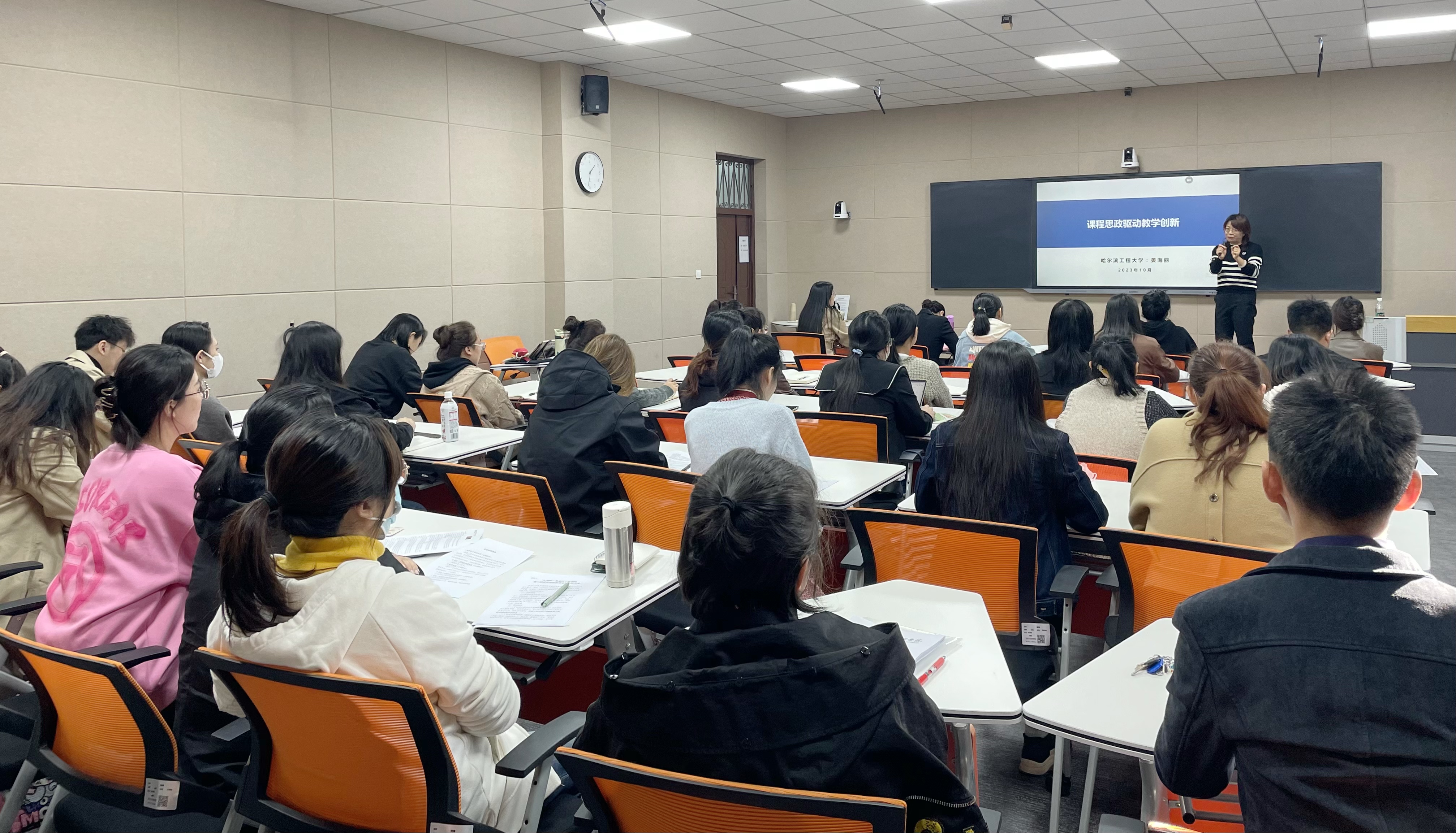 10月11日,教师发展中心举办“课程思政建设驱动教学创新”专题讲座,邀请省课程思政建设专家委员会委员、哈尔滨工程大学姜海丽教授主讲。讲座由教师发展中心主任袁敏教授主持。