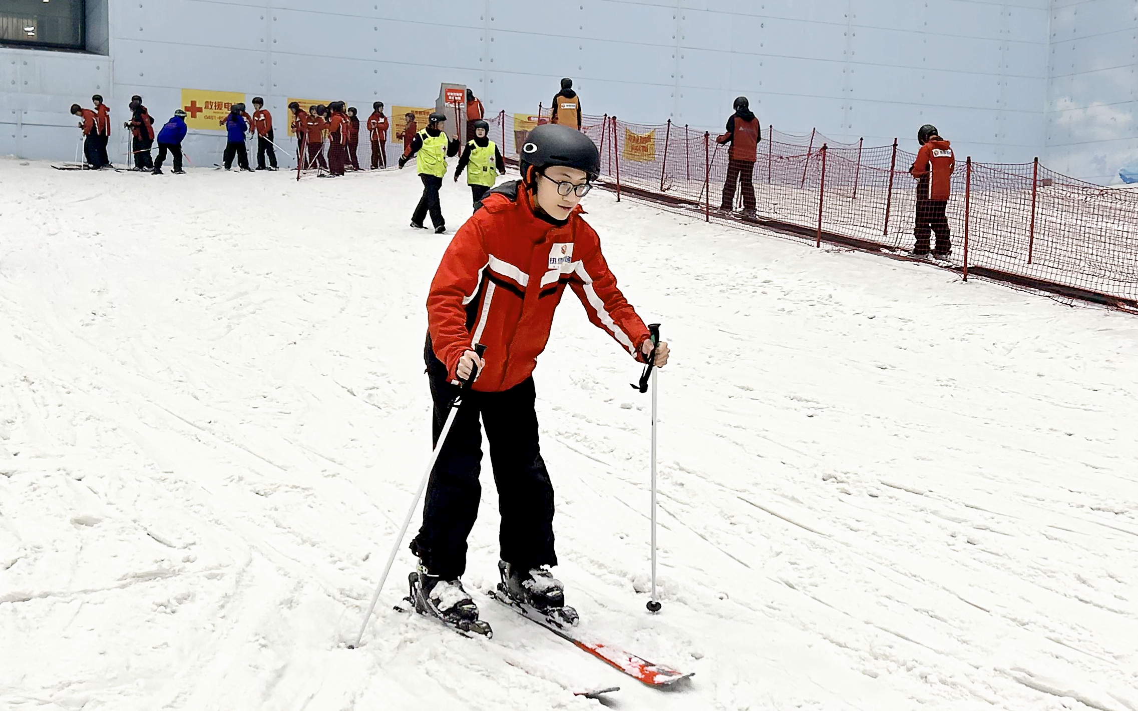 从滑雪装备穿戴的讲解,到滑雪基础技能的讲授,同学们在滑雪教练和体育教师的双重指导下,学习滑雪知识、练习滑行技能,体验冰雪运动的乐趣。来自全国各地的青年再续“冰雪奇缘”,瞬间激发运动活力,持续释放“走进龙江、了解龙江、爱上龙江”的社会效应。