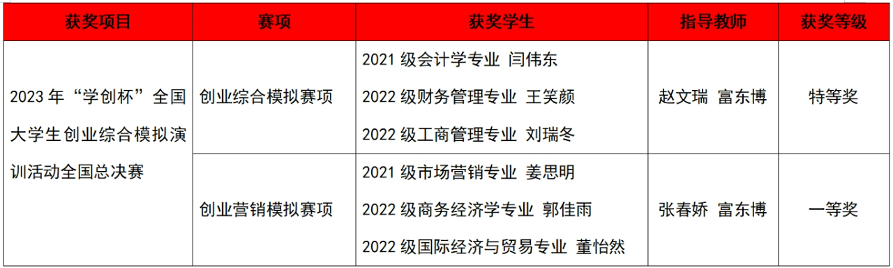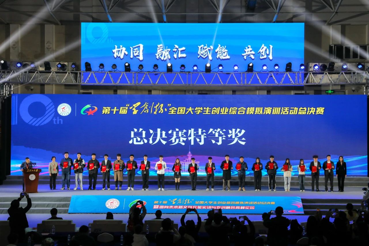 10月29日,由高等学校国家级实验教学示范中心联席会主办,黑龙江大学和南京审计大学分别承办的2023年“学创杯”全国大学生创业综合模拟演训活动全国总决赛落下帷幕。商学院富东博名师工作室代表学校参加“创业综合模拟”和“创业营销模拟”两个赛道的竞赛,两战两捷,从来自全国的1500余所高校,600余支参赛队伍,近30万师生中脱颖而出,凭借总分第一获得主赛道(创业综合模拟赛项)特等奖,专项赛(创业营销模拟赛项)一等奖的好成绩。更难能可贵的是,名师工作室师生已七年蝉联该项赛事国赛最高奖项,包揽省赛一等奖36项的好成绩,获奖数量、级别均居省内高校首位,书写了人才培养成果丰硕的精彩答卷。