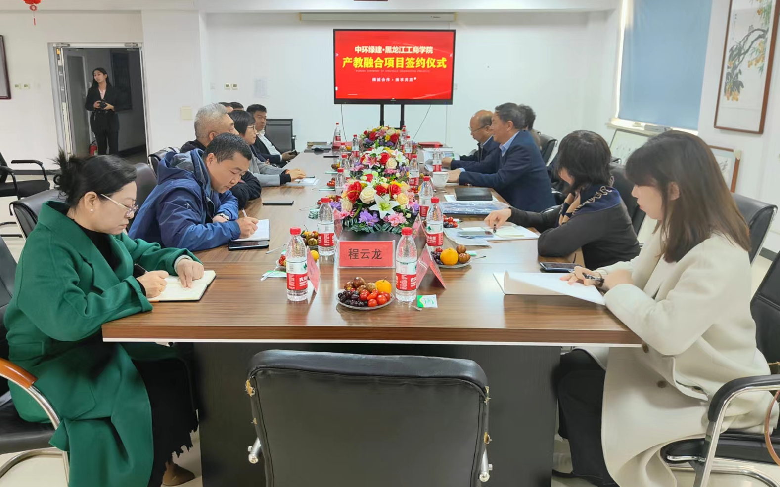 秦皇岛中环绿建新型材料有限公司是科技创新型企业,涉及新型材料研发应用、装配式建筑、超低能耗房屋体系等多个领域。调研组一行实地考察参观了公司厂房、生产车间和在建项目,详细了解企业发展情况、人才需求和未来规划。双方签订校企合作协议,秦智伟为公司董事长马仁武颁发“客座教授暨创业导师”聘书,为企业授牌“m体育【中国】股份有限公司产教融合实训就业基地”。
