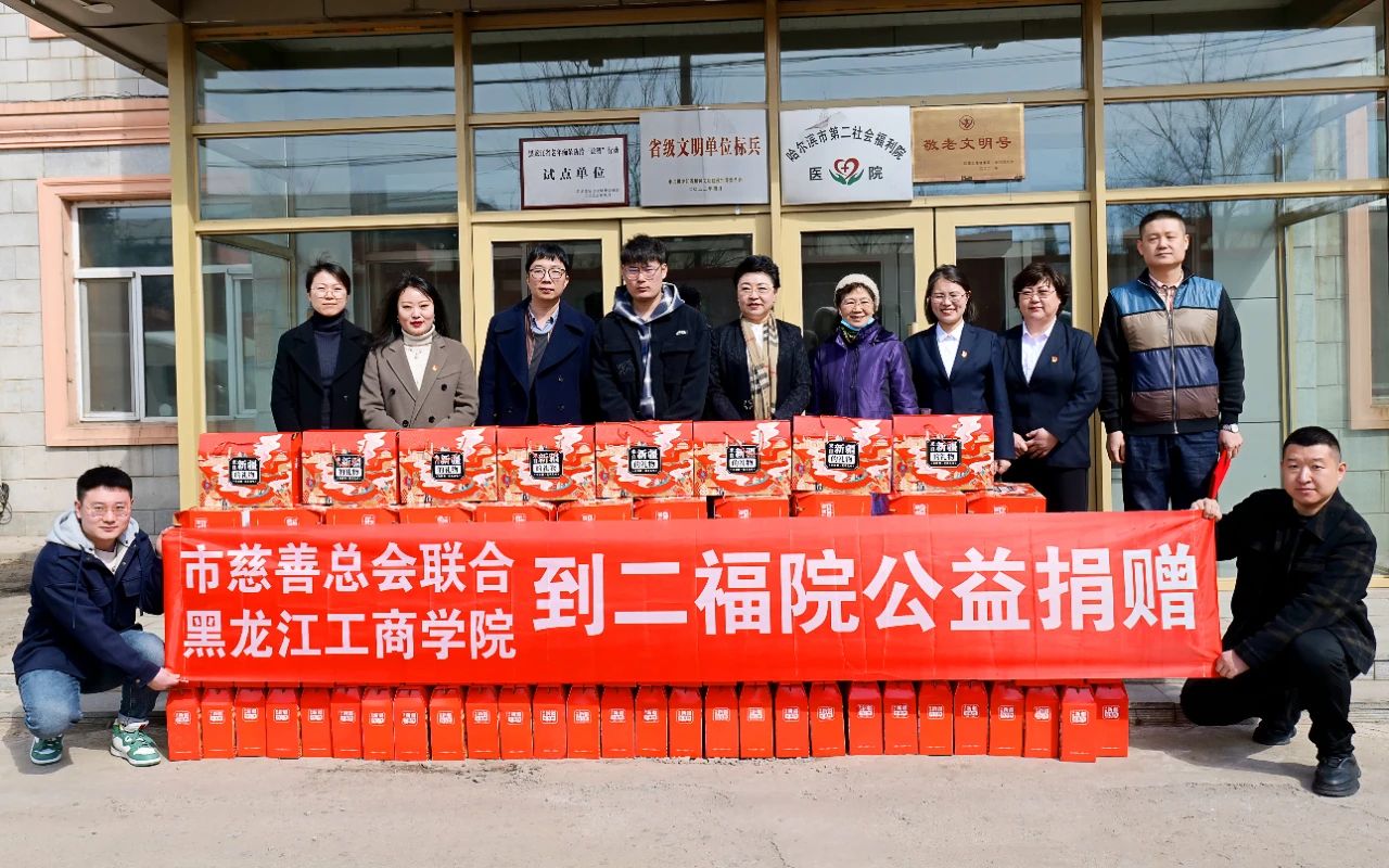 4月2日,我校联合哈尔滨市慈善总会爱心捐赠活动在哈尔滨市第二社会福利院举行,艺术与传媒学院2021级学生刘庆智捐赠个人创业公司生产的总价值8000余元的大枣加工制品。哈尔滨市民政局常务副局长王春华、哈尔滨市慈善总会副会长张慧艳、哈尔滨市第二社会福利院负责人邵长丹、党总支书记宫杰,我校艺术与传媒学院、党委宣传部、校团委等相关负责人参加活动。