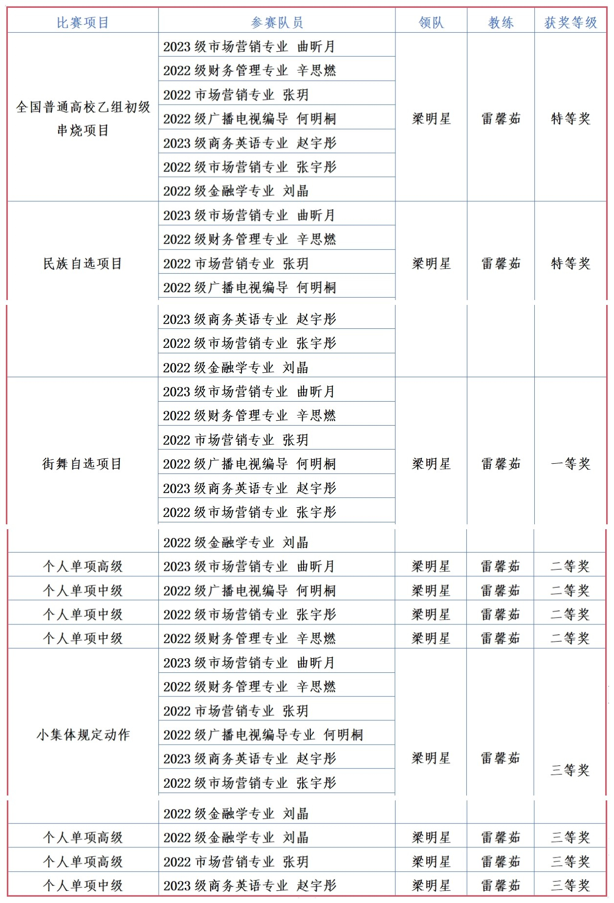 连日来,我校师生接连在多项国家级体育赛事中屡创佳绩、捷报频传!在2024年全国排舞锦标赛中获得特等奖2项、一等奖1项、二等奖4项、三等奖4项,并凭借总团体分获得普通高等学校乙组全国第三名的好成绩;射箭队首次参加中国大学生射箭(射艺)锦标赛,即闯入全国团体赛15强、个人赛30强;在2024年青少年橄榄球锦标赛中获得二等奖1项、三等奖3项、四等奖2项的好成绩。让“青春”动起来,青年全面发展、健康成长!摘金夺银的学子集中展现了青春活力、运动之美和顽强拼搏的体育精神,展示了学校以体育人塑心,促进群众体育和竞技体育比翼齐飞的育人成果。