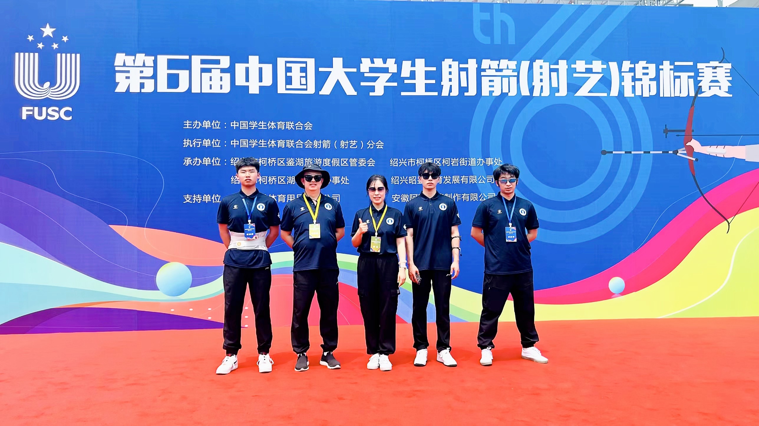 注:第六届大学生射箭(射艺)锦标赛由中国学生体育联合会主办,全国72所高校的420余名运动员参赛,我校射箭队强化日常训练,研究比赛策略,凭借精湛的射箭技艺和沉稳冷静的心理素质斩获佳绩。