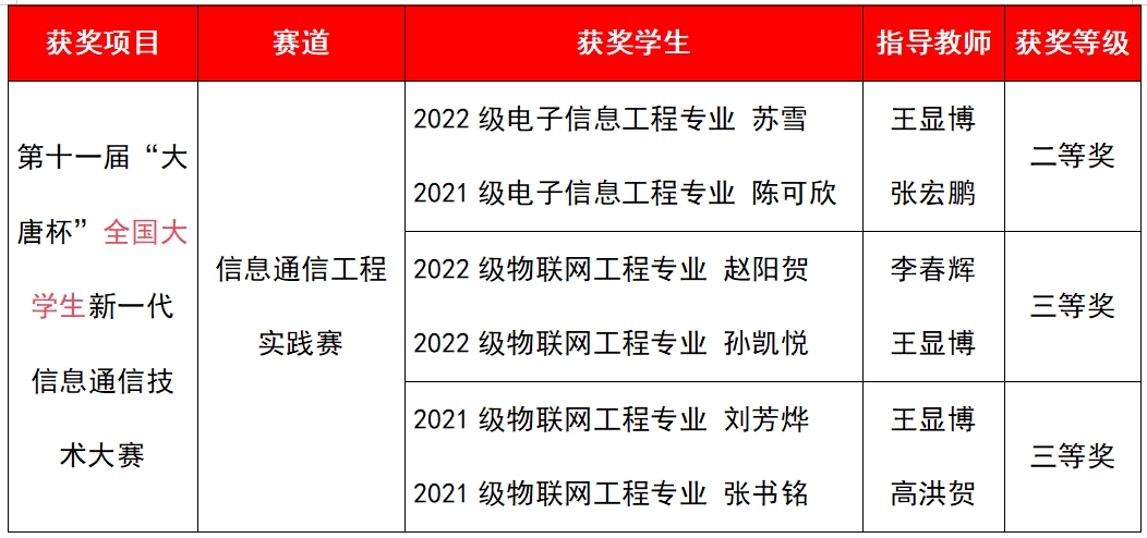 注:2022级电子信息工程专业苏雪团队获大赛二等奖