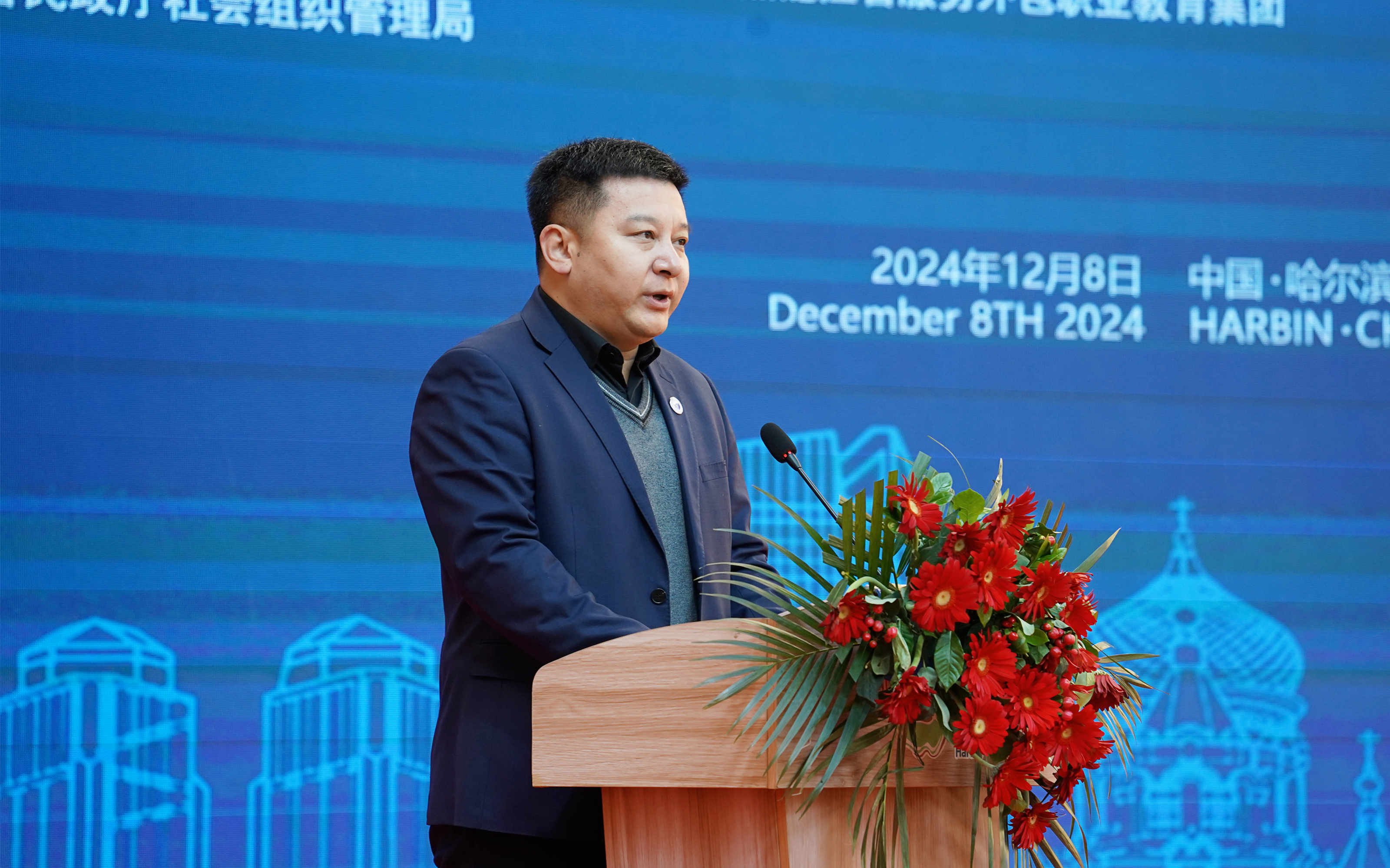 张幸刚在致辞中表示,学校积极相应“百万青少年上冰雪”的号召,让冰雪研学实践成为青年学子了解龙江、热爱龙江、宣传龙江、助力龙江发展的重要载体。自2023年开始,连续组织4000余名学生赴亚布力、融创室内滑雪场开展滑雪实践活动;今年还将选派190余名学生志愿者参与到哈尔滨冰雪大世界的志愿服务中。此次短视频推广活动为同学们展示龙江冰雪魅力提供了平台,希望大家成为传播大使,讲好龙江故事;表达醇厚深情,弘扬龙江文明,向远道而来的海内外游客,倾力推荐展示龙江,共赴亚冬盛会。