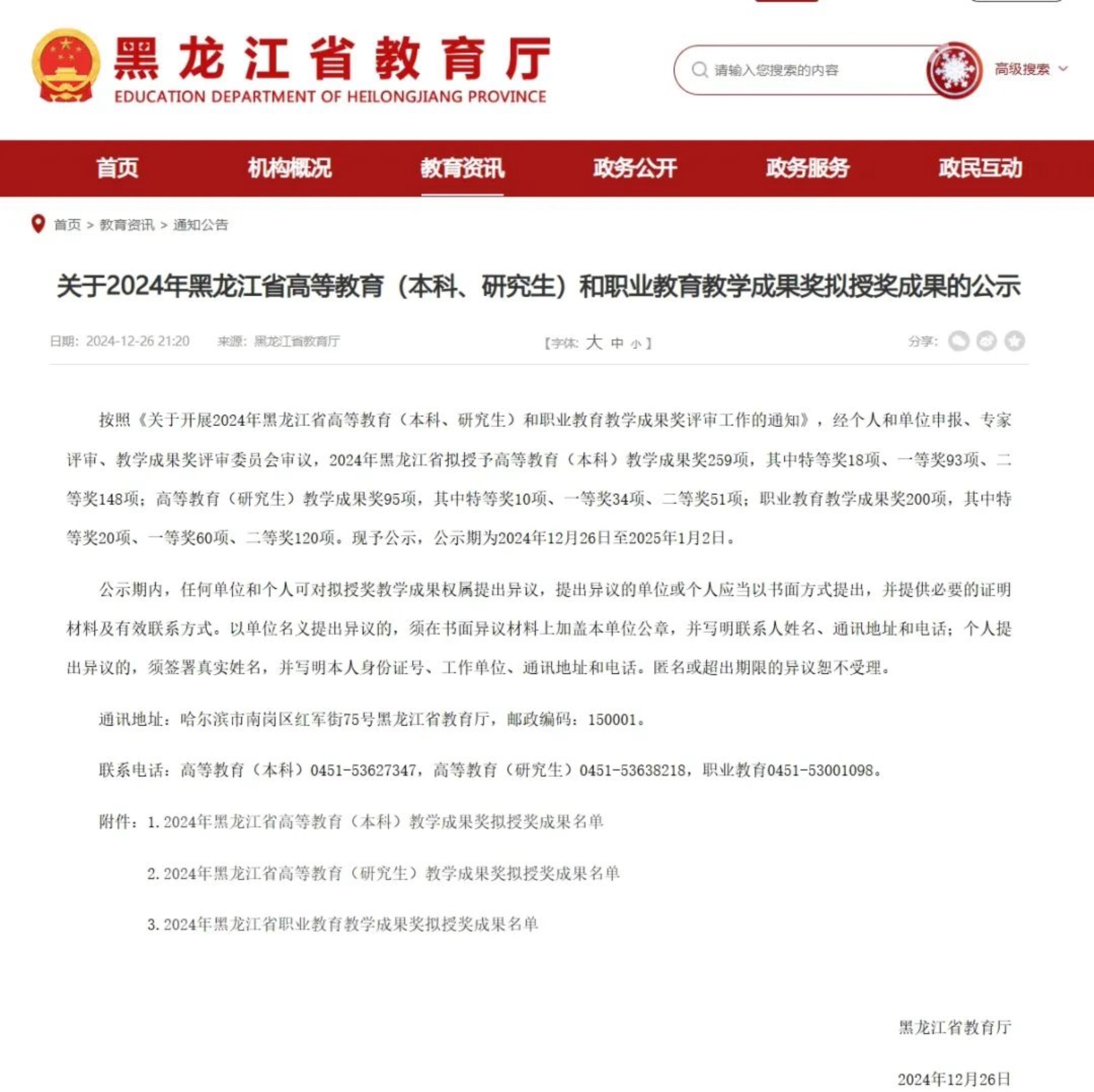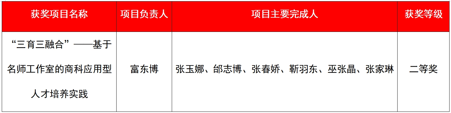 近日,黑龙江省教育厅公布了我省2024年高等教育和职业教育教学成果奖名单,由我校富东博主持的项目《“三育三融合”——基于名师工作室的商科应用型人才培养实践》喜获二等奖。