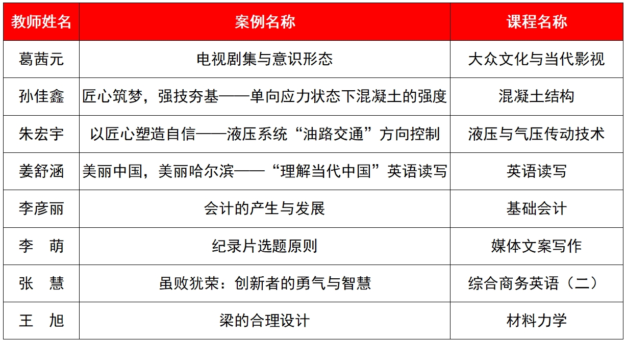 第四届课程思政优秀教学案例评选结果